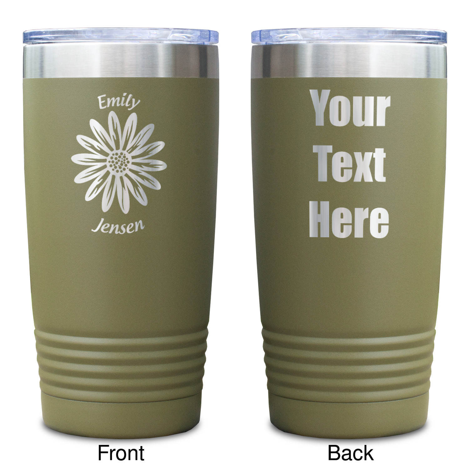 With our personalized 20 oz double wall stainless steel tumblers, you'll never have to settle for a plain, boring tumbler again! These tumblers will be a wonderful addition to your drinkware collection and will make those long commutes much brighter. Personalize one for yourself, or give these personalized tumblers as a gift to relatives, friends, or coworkers!