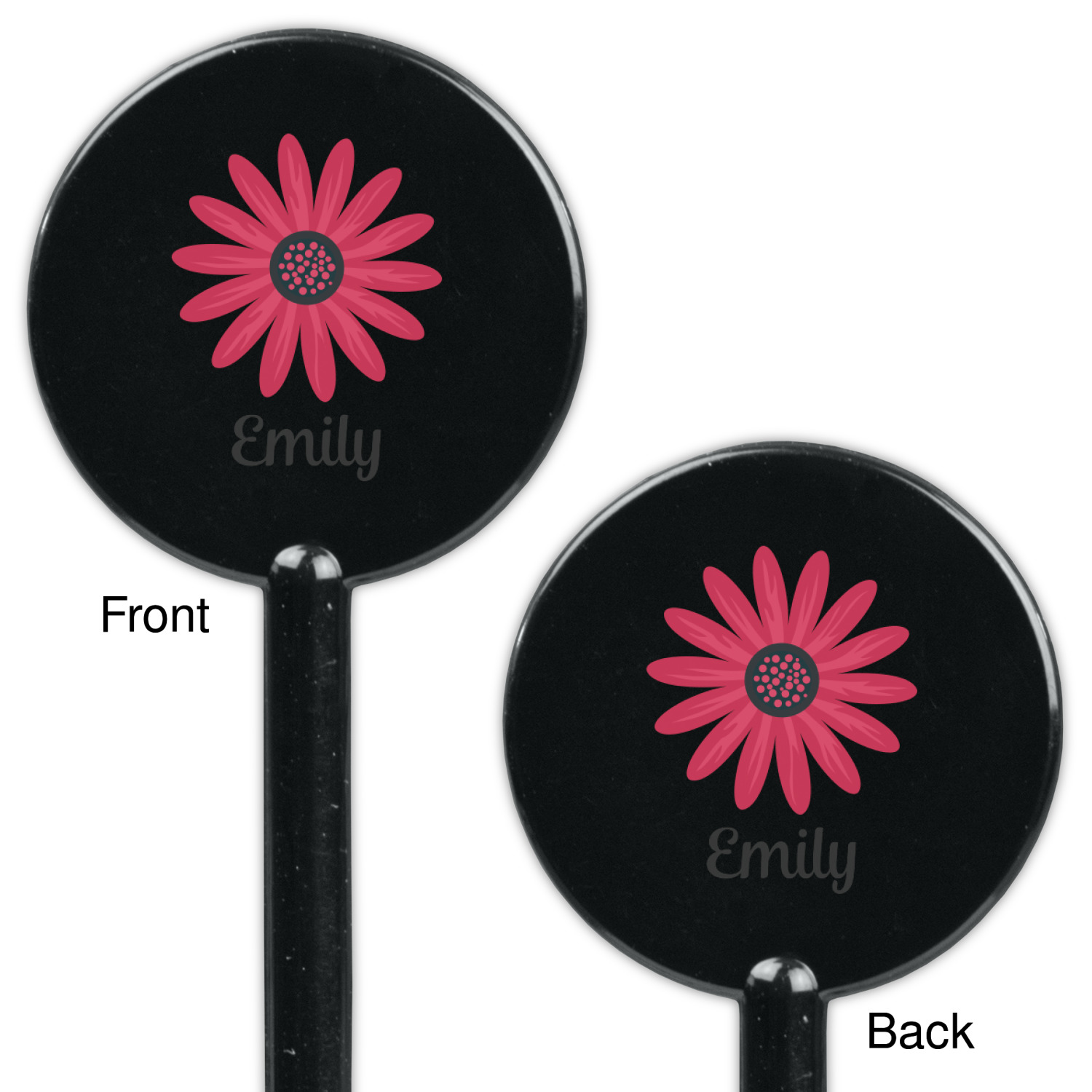 Daisy / Daisies Designs for 5.5" Round Plastic Stir Sticks - Black - Double-Sided