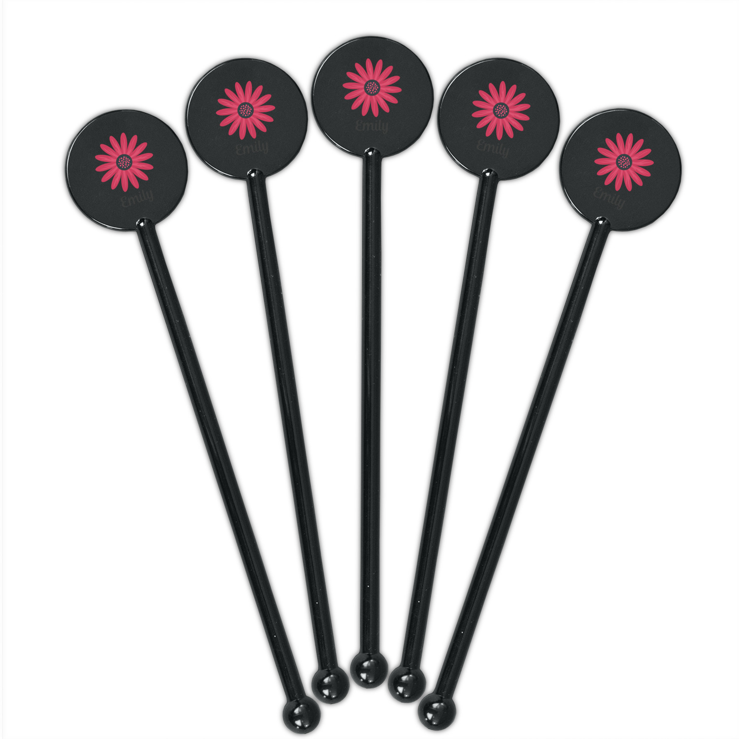 Daisy / Daisies Designs for 5.5" Round Plastic Stir Sticks - Black - Single-Sided