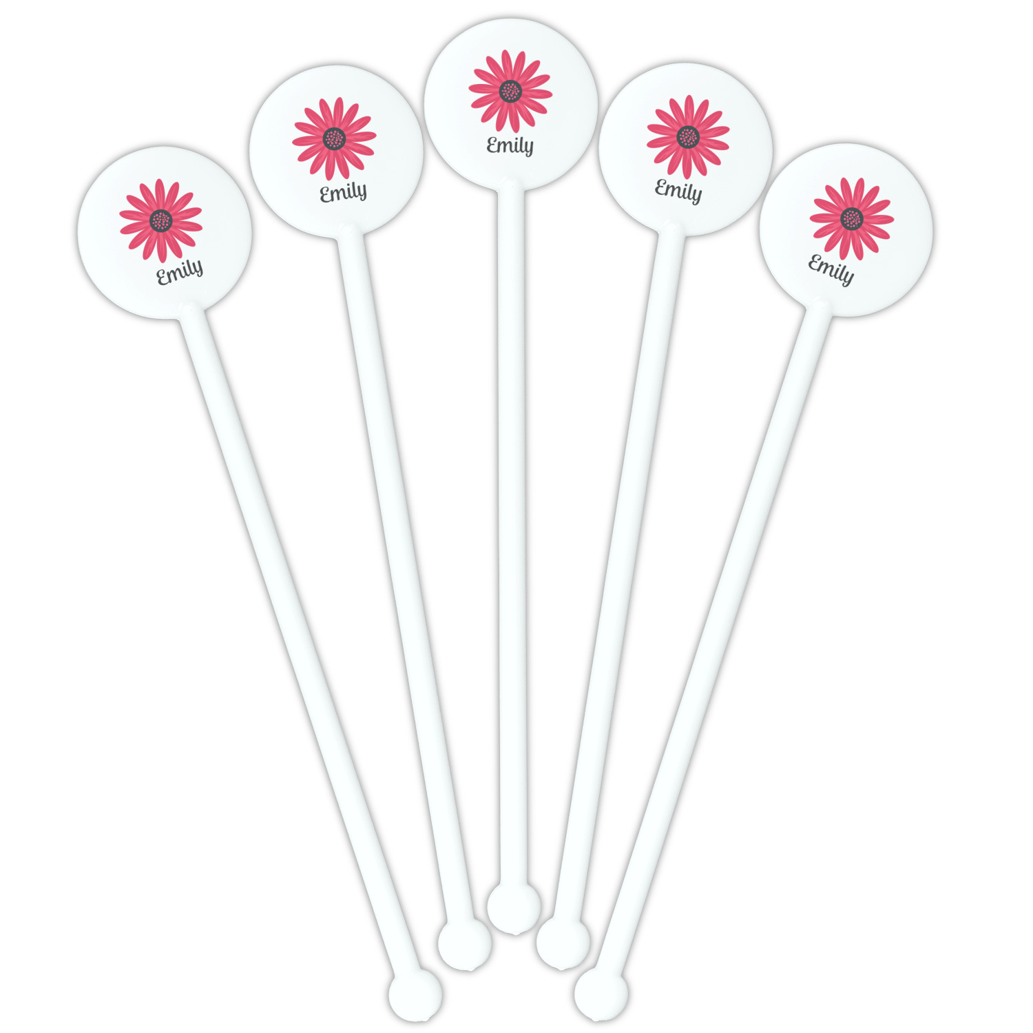 Daisy / Daisies Designs for 5.5" Round Plastic Stir Sticks - White - Double-Sided