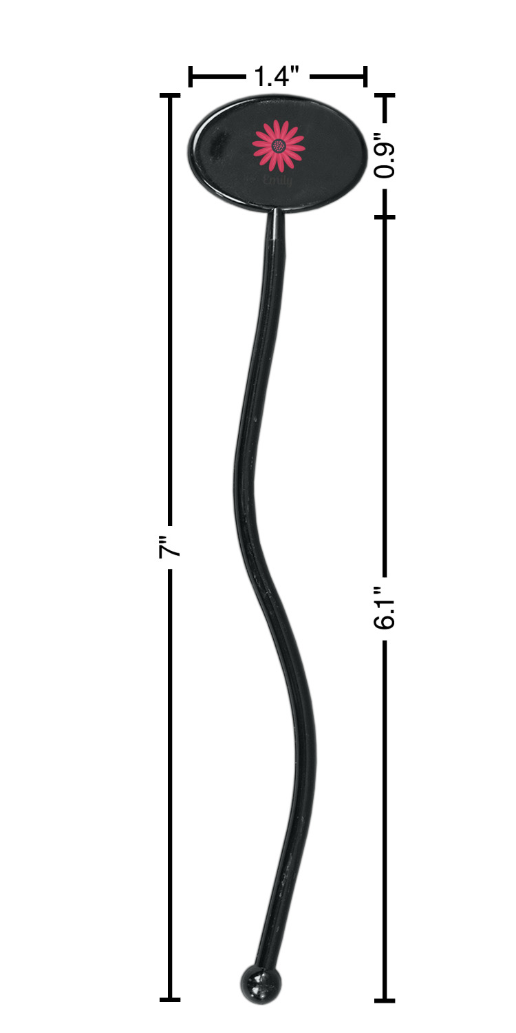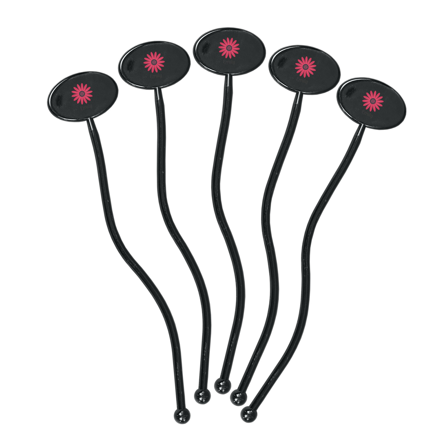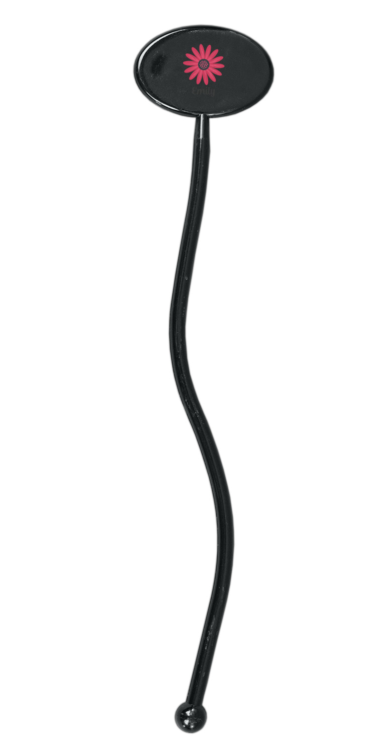 Daisy / Daisies Designs for 7" Oval Plastic Stir Sticks - Black - Single-Sided