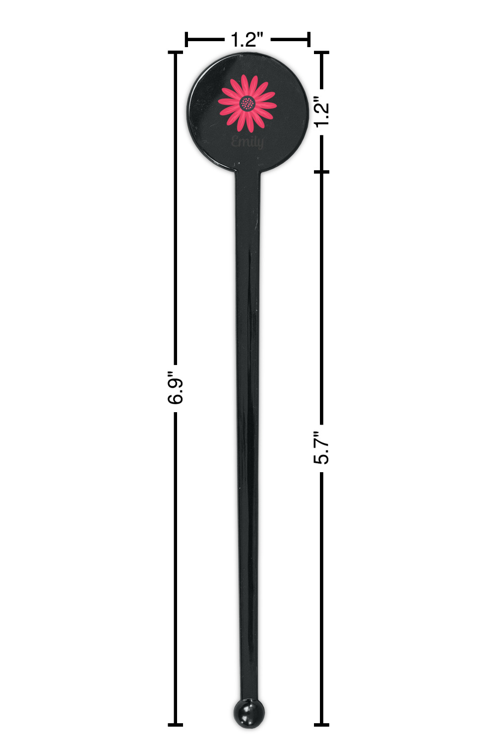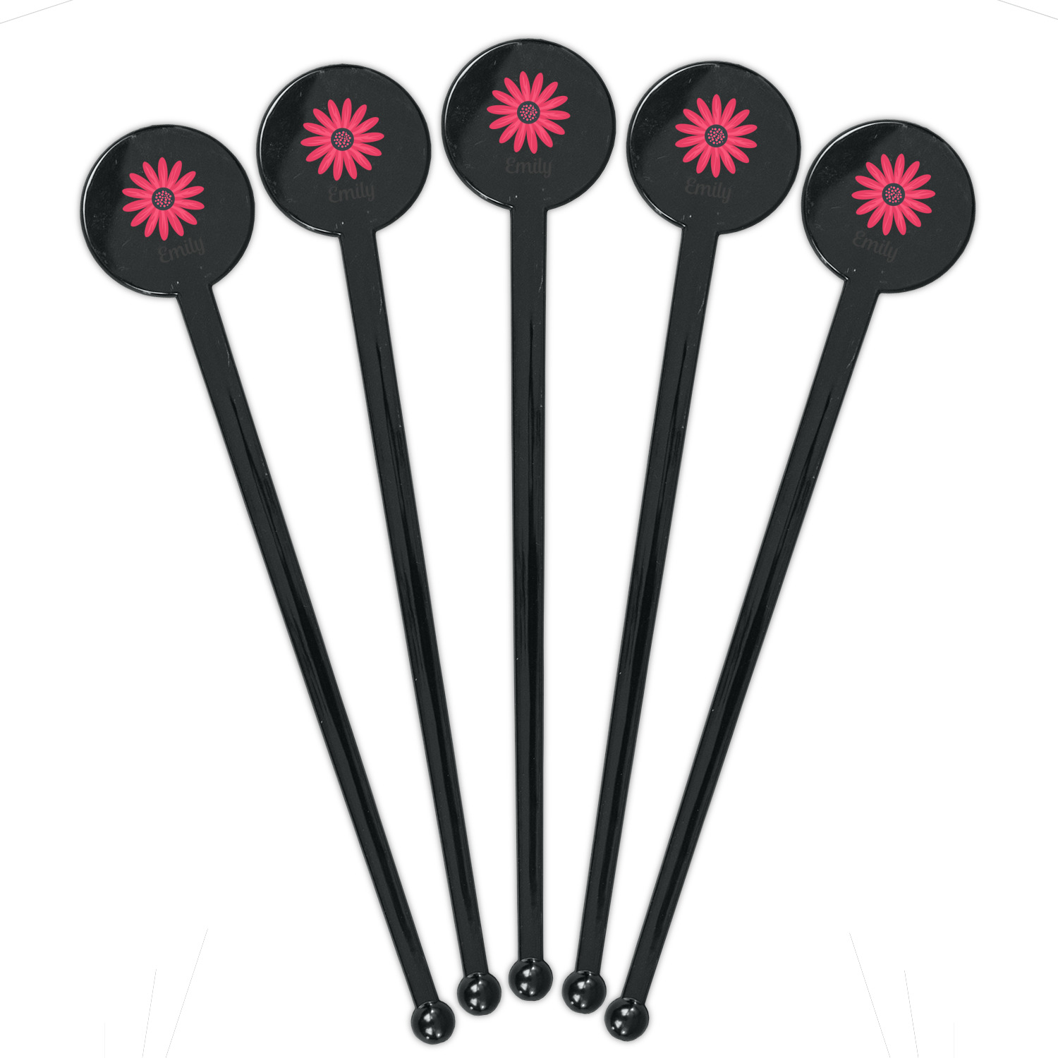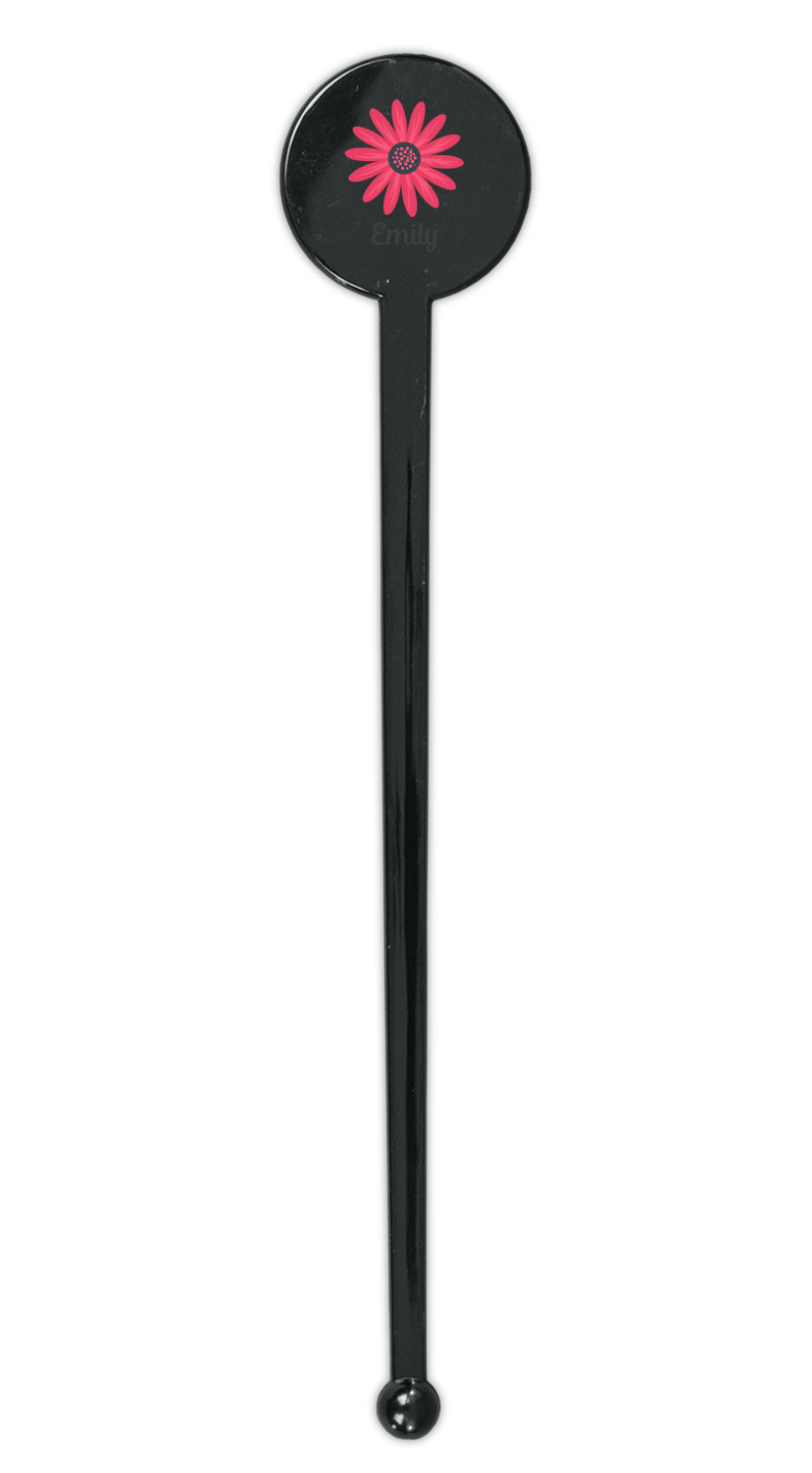 Daisy / Daisies Designs for 7" Round Plastic Stir Sticks - Black - Single-Sided