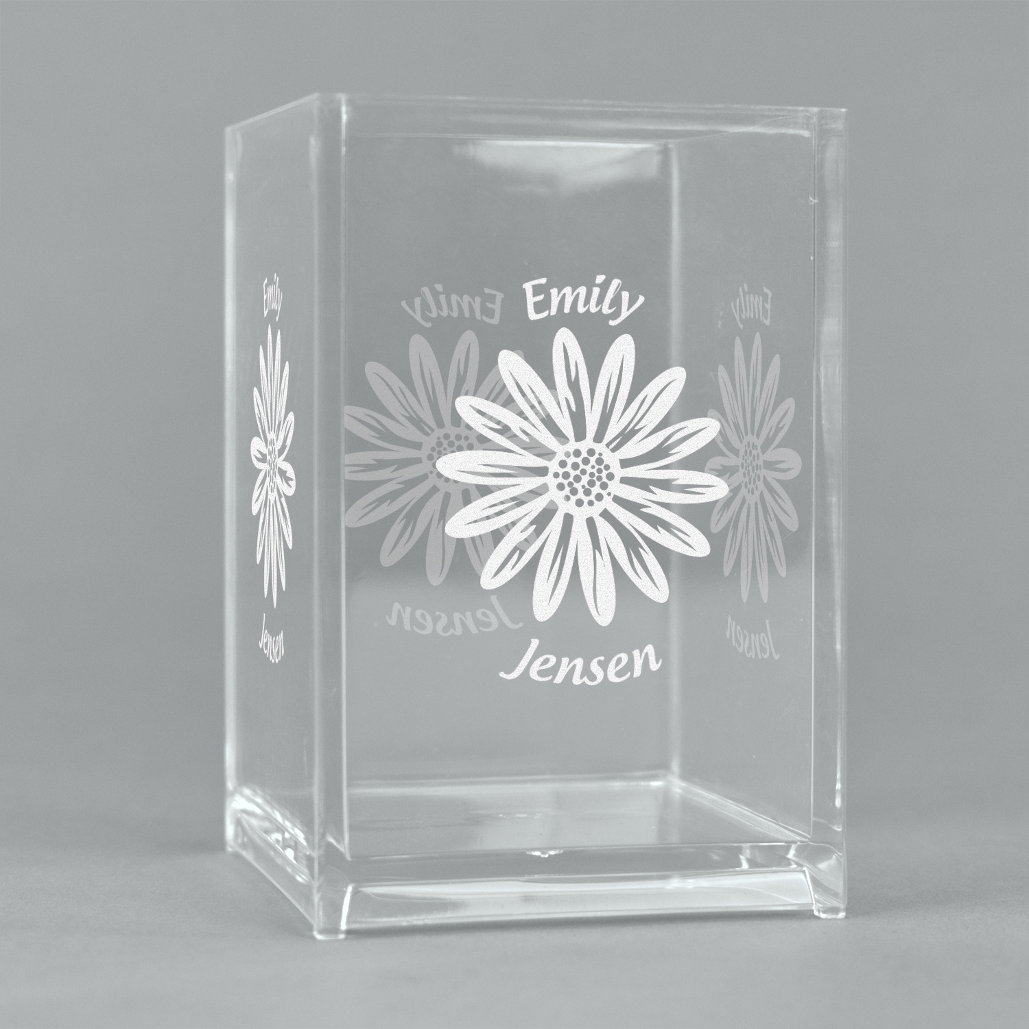 Add a great accessory to your desk with one of these acrylic pen holders. A great way to store your writing utensils, and personalized to suit your needs.