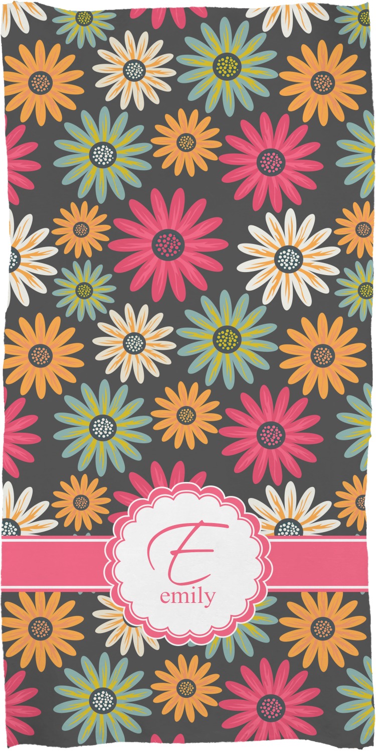 These customized bath towels are slightly larger than your standard towel and are the ideal size for wrapping around your body. They measure approximately 60" x 30". Your customization is displayed across the entire front face of the towel, while the back is white.