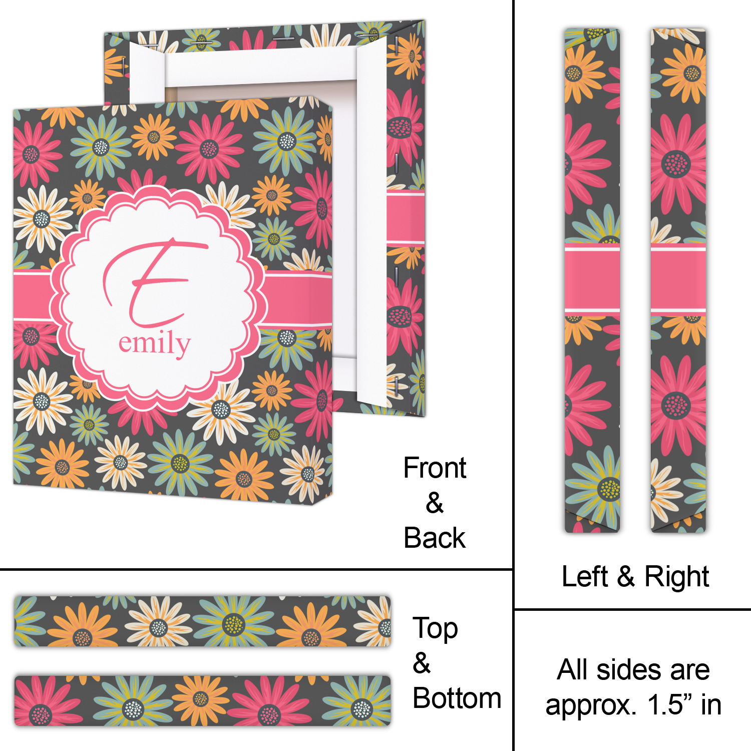 The flowers in this design are are a vibrant mix of fall colors, all on a deep gray background. The design has a classic ribbon in hot pink, the perfect place to add a name for that personal touch to pull the entire design together.