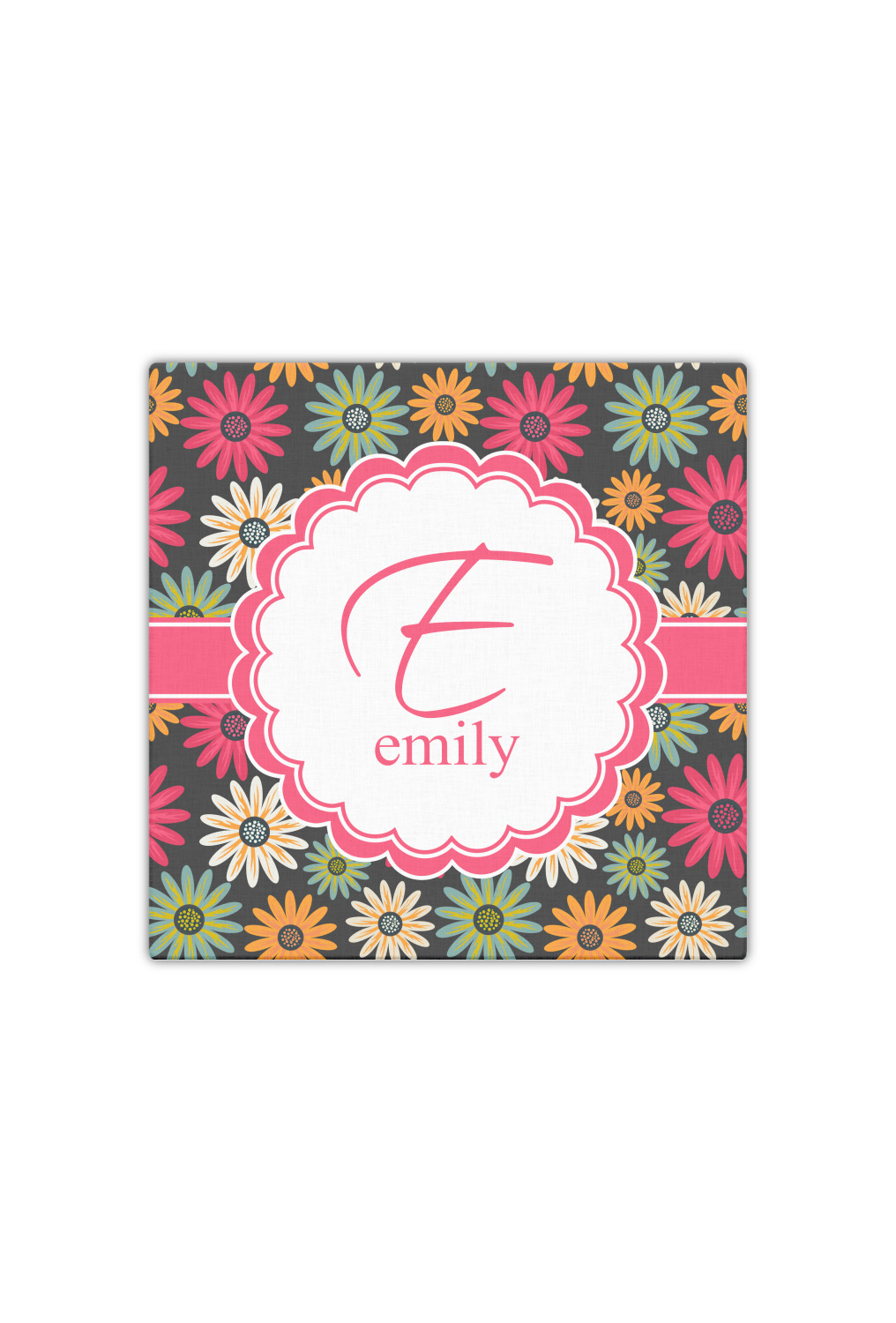 The flowers in this design are are a vibrant mix of fall colors, all on a deep gray background. The design has a classic ribbon in hot pink, the perfect place to add a name for that personal touch to pull the entire design together.