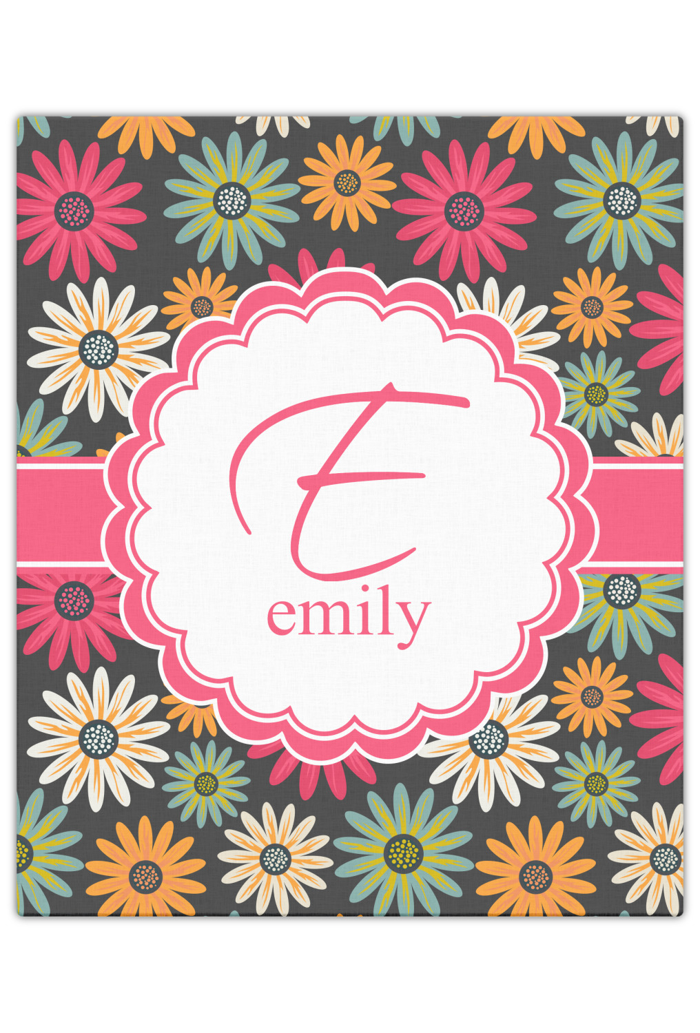 The flowers in this design are are a vibrant mix of fall colors, all on a deep gray background. The design has a classic ribbon in hot pink, the perfect place to add a name for that personal touch to pull the entire design together.
