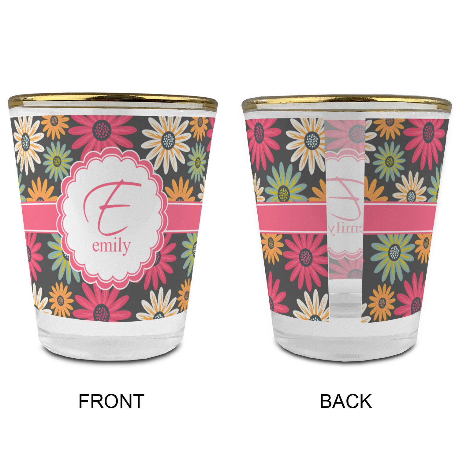 Daisy / Daisies Designs for Glass Shot Glasses - 1.5 oz - with Gold Rim - Single