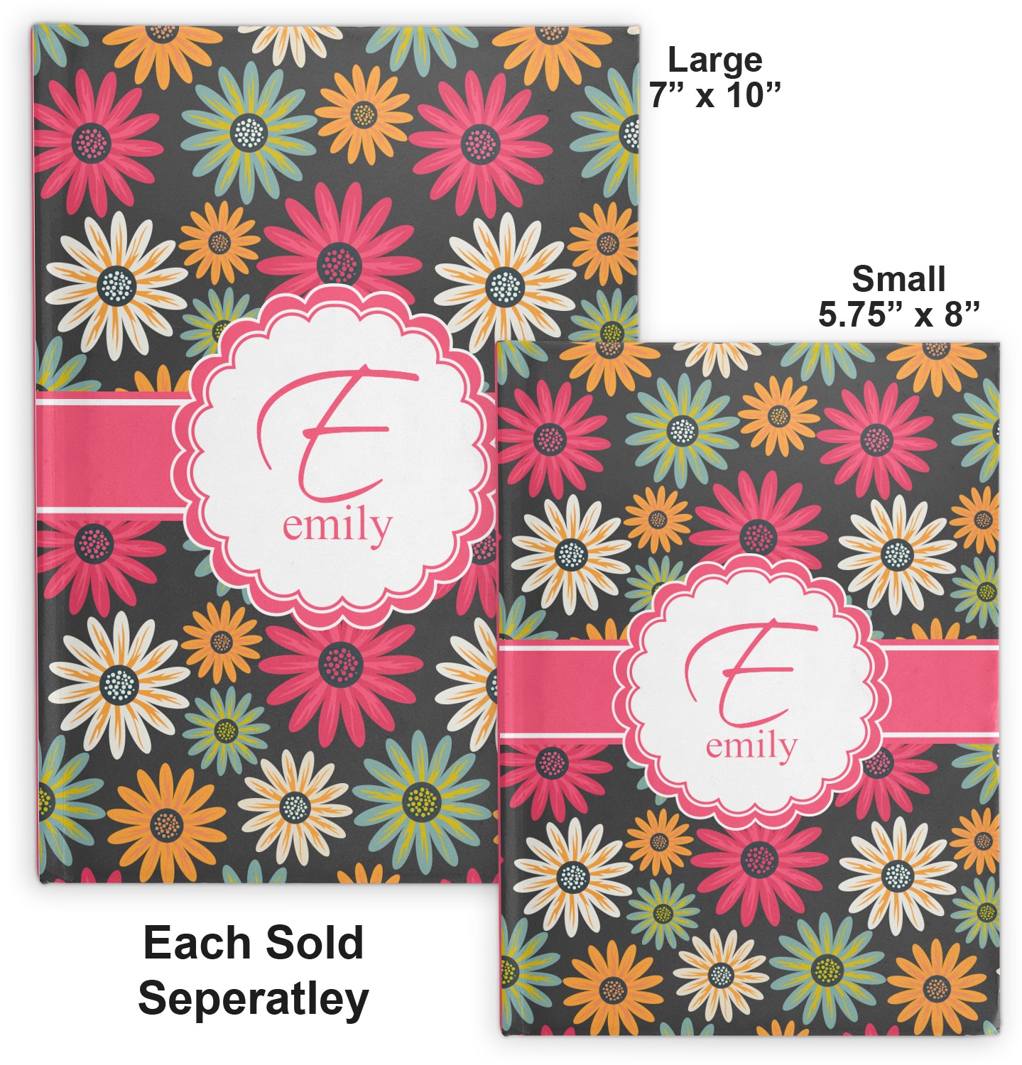 With two sizes of these cute journals available, you're bound to find one that will suit your needs. Our small journal measures at 8" x 5.75"; this size is better suited for purses and totes. Our large journal measures at 10" x 7"; this size will be better accommodated within a briefcase or backpack.