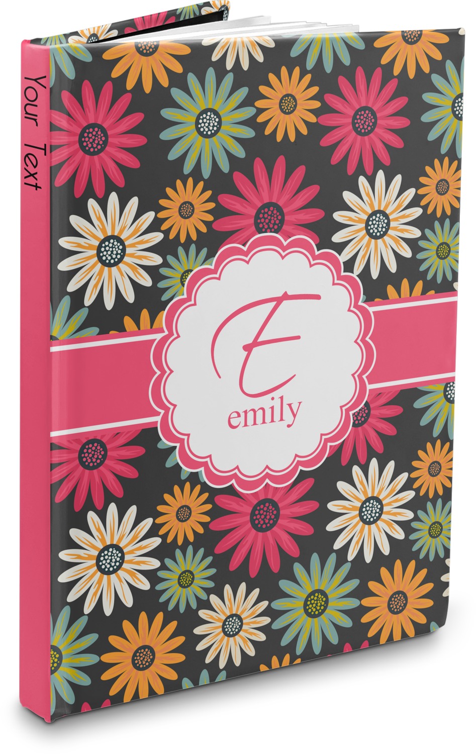The hardcover of this personalized journal is covered with a smooth, matte, laminate coating. The unique laminate of the covers gives the hardcover notebook a smooth, sleek feel. Filled with 75, lined, white pages, this hardbound notebook has enough room for your reminders and notes. For your convenience, the pages have been perforated, which guarantees an easy tear and removal. Your customization is printed across the entire cover of the book, while the interior is black in color.