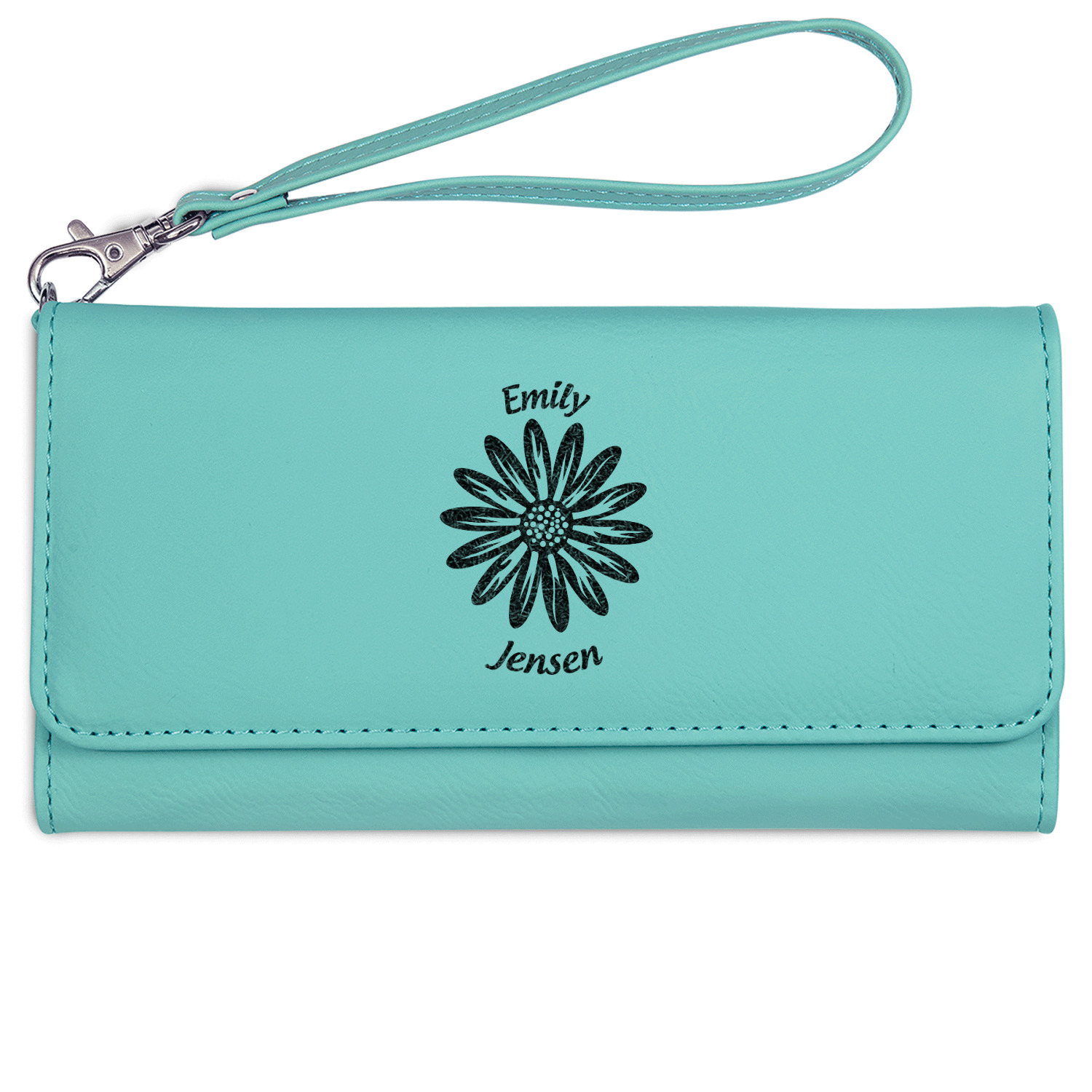 These personalized ladies leather wallets are available in 2 colors - rawhide / cognac and teal.