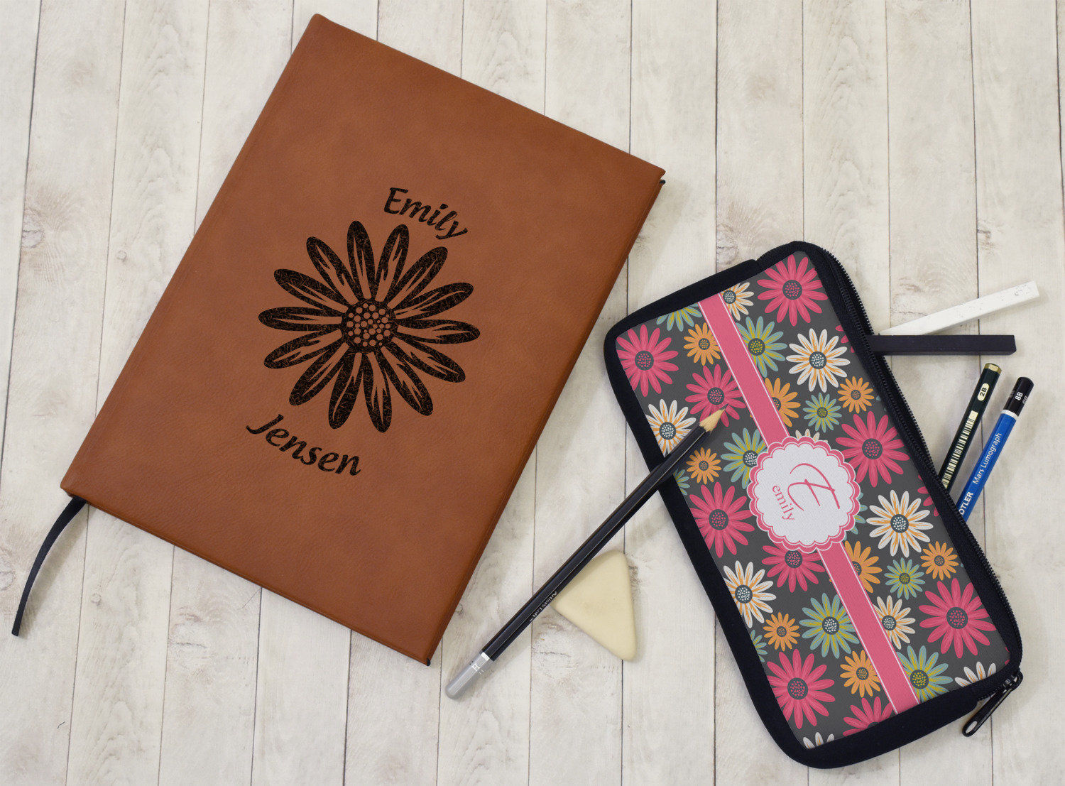 The faux leather covers are a rich cognac / rawhide color and can be customized with your design. From a simple name or monogram or a logo to a detailed mandala - the choice for customization & personalization is truly yours. Customize one of our designs or upload your own.