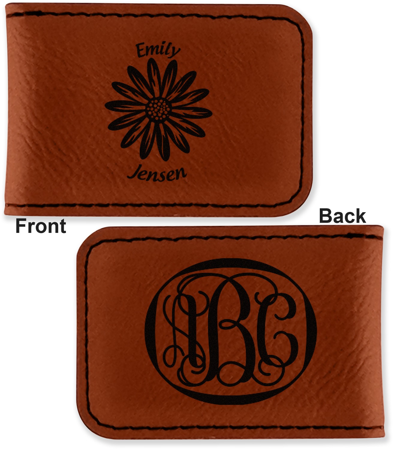 Your money clip will be laser engraved so that the design you choose will come out black. Find a fun graphic, monogram, or font to use to personalize your money clip either on just the front or the front and the back.