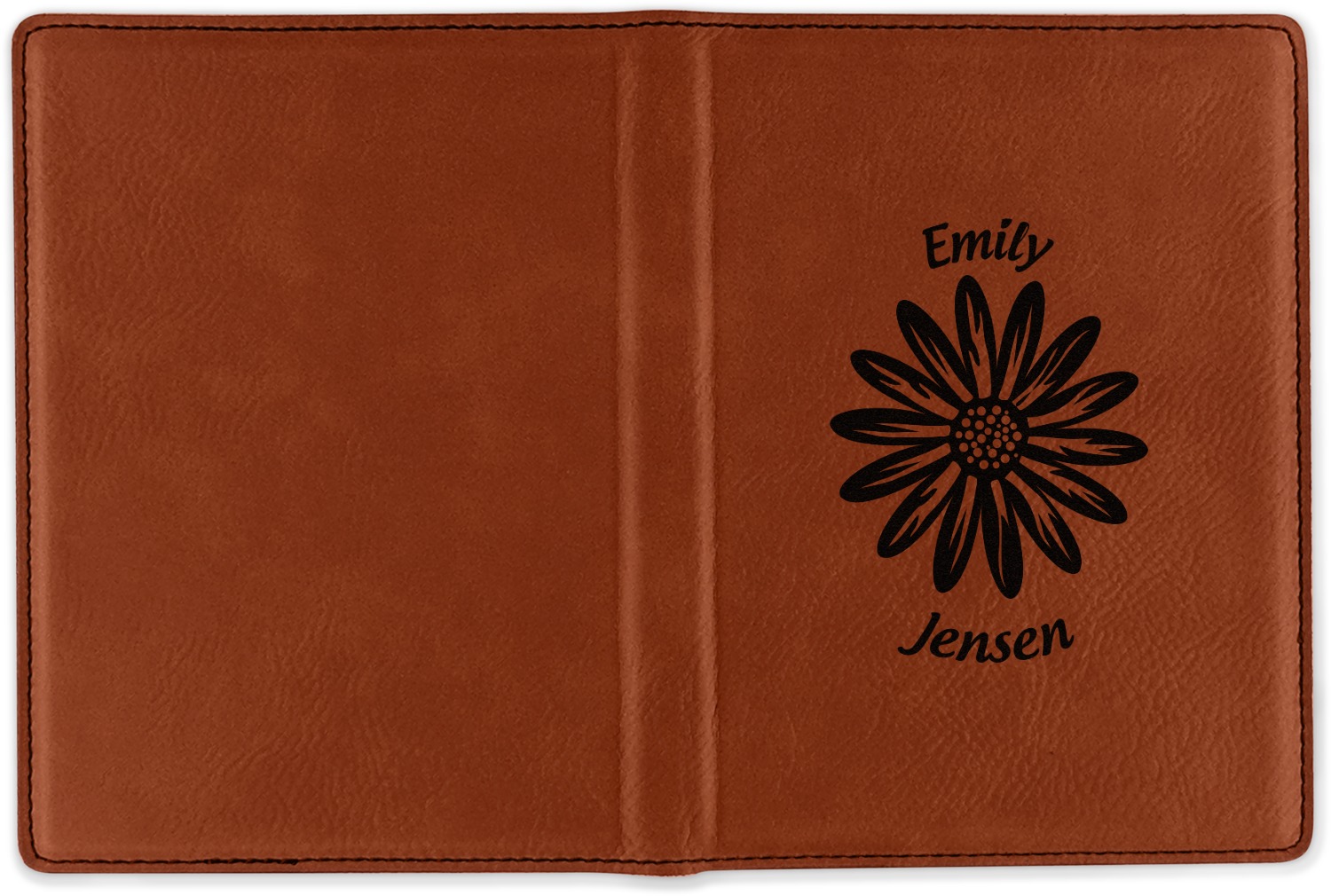 Although they are faux leather, these passport holders feel great in your hand. They are laser engraved either just on the front or the front and back. The image that is engraved onto your passport holder will be shades of black.