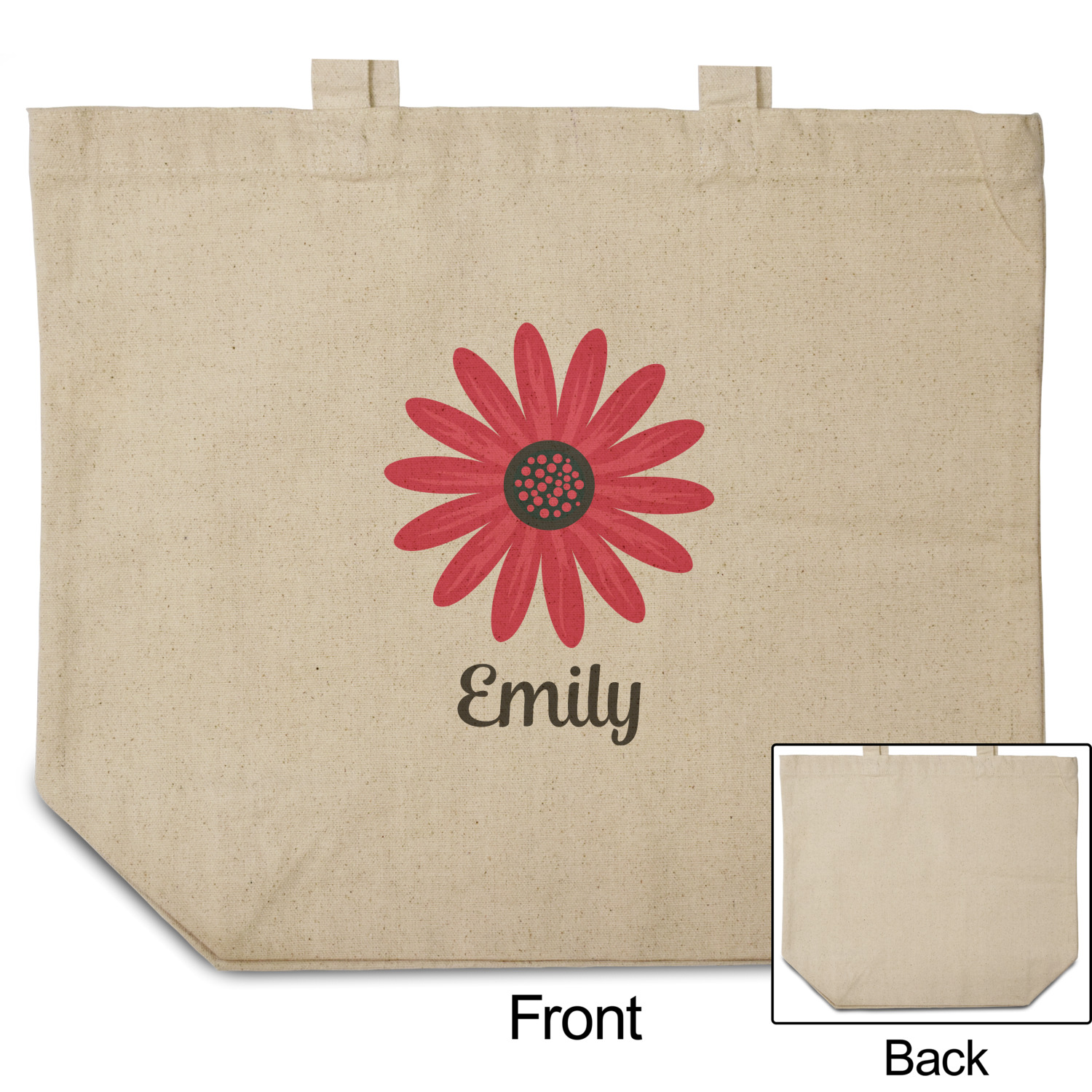 These cotton totes are washable and easy to care for, and they can be folded flat for storage. Your artwork, logo, or photo is printed in full color directly on the cotton tote in the front.
