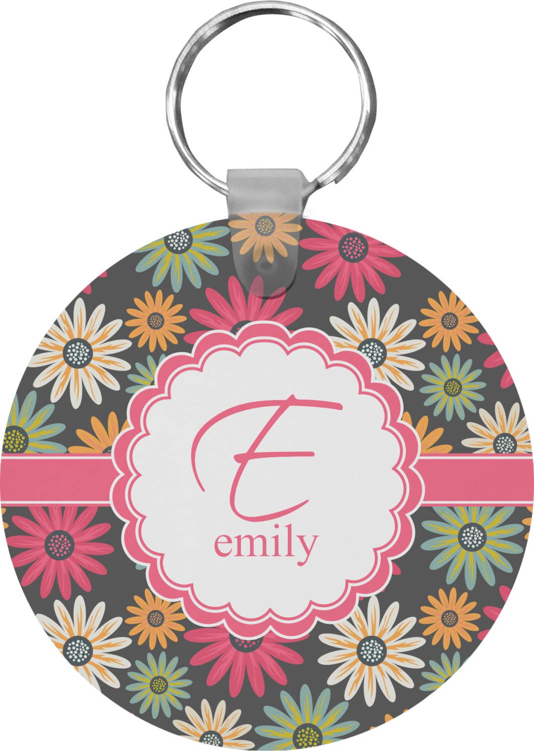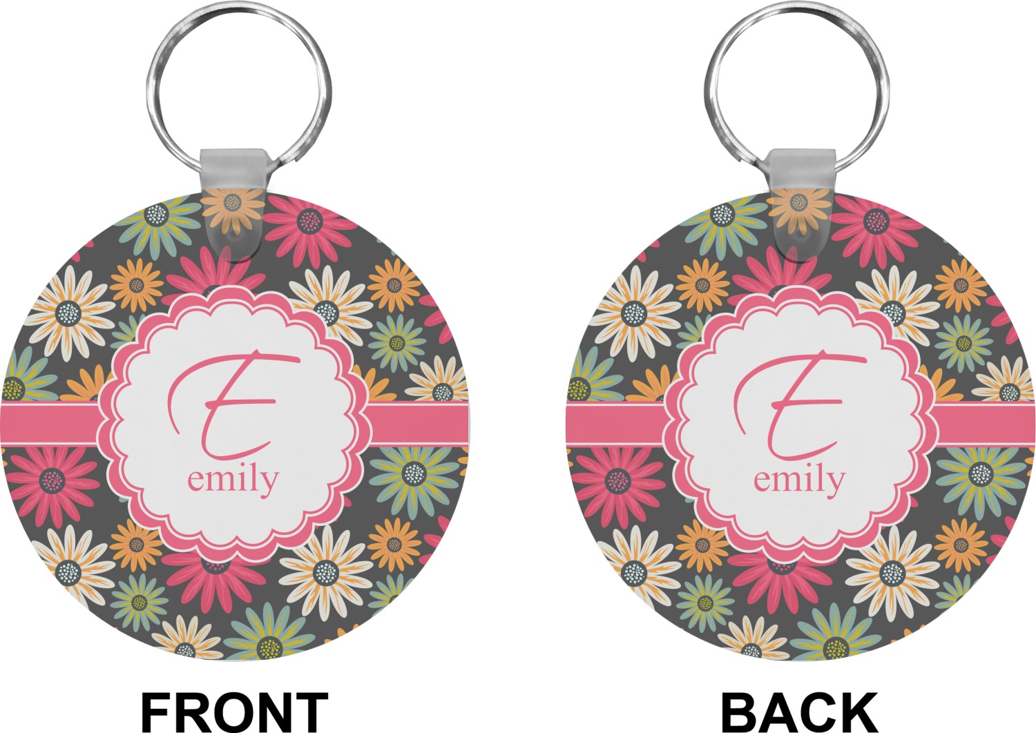 Our personalized keychains attach to the included metal, split key ring with a plastic, removable snap. Since a metal ring is included with your purchase, you have the liberty to keep your keys together on the ring, with or without your unique keychain. We offer this keychain in three different shapes: circle, heart, or diamond. We print your personalized design(s) on both sides of the key chain, and the surface has a glossy, reflective finish that only emphasizes your design. Each keychain is approximately 2.25 by 2.25 inches.