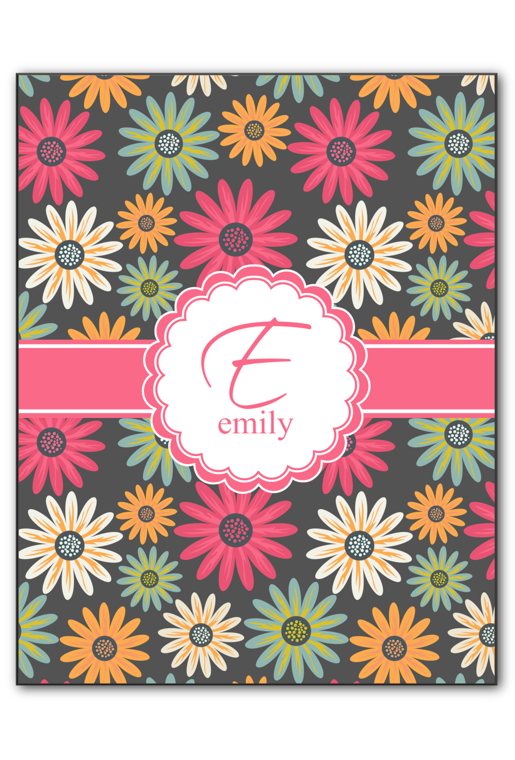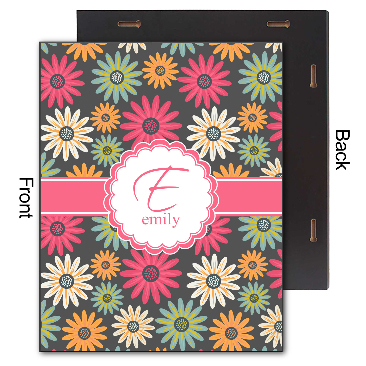 The flowers in this design are are a vibrant mix of fall colors, all on a deep gray background. The design has a classic ribbon in hot pink, the perfect place to add a name for that personal touch to pull the entire design together.
