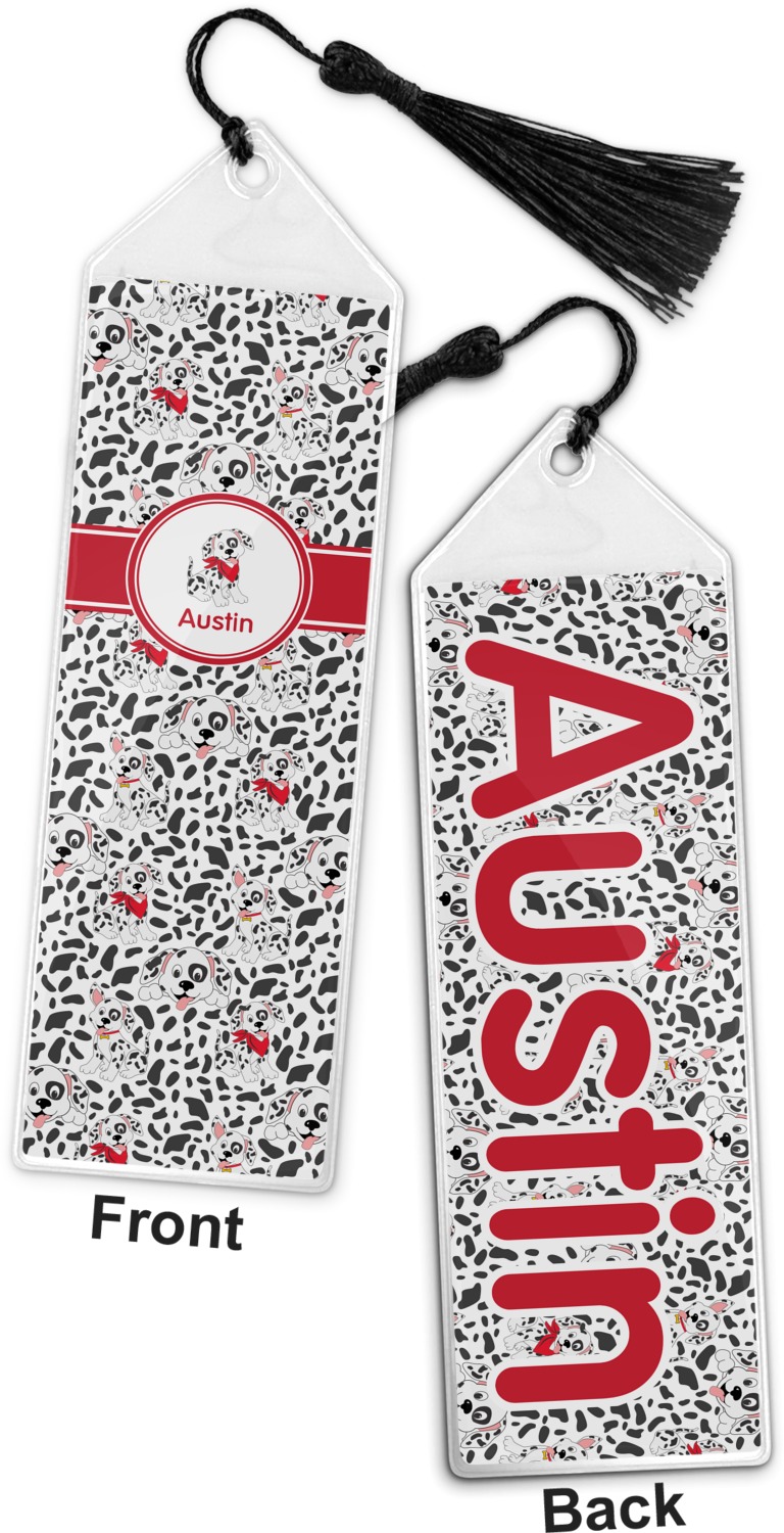 Your personalized bookmark is made of a sturdy, clear vinyl, and is approximately 7.5" x 2.25". We display your personalization on vinyl inserts that are placed on both sides. Accompanying each book marker is a black, fringe tassel that attaches to the reinforced, triangular header.