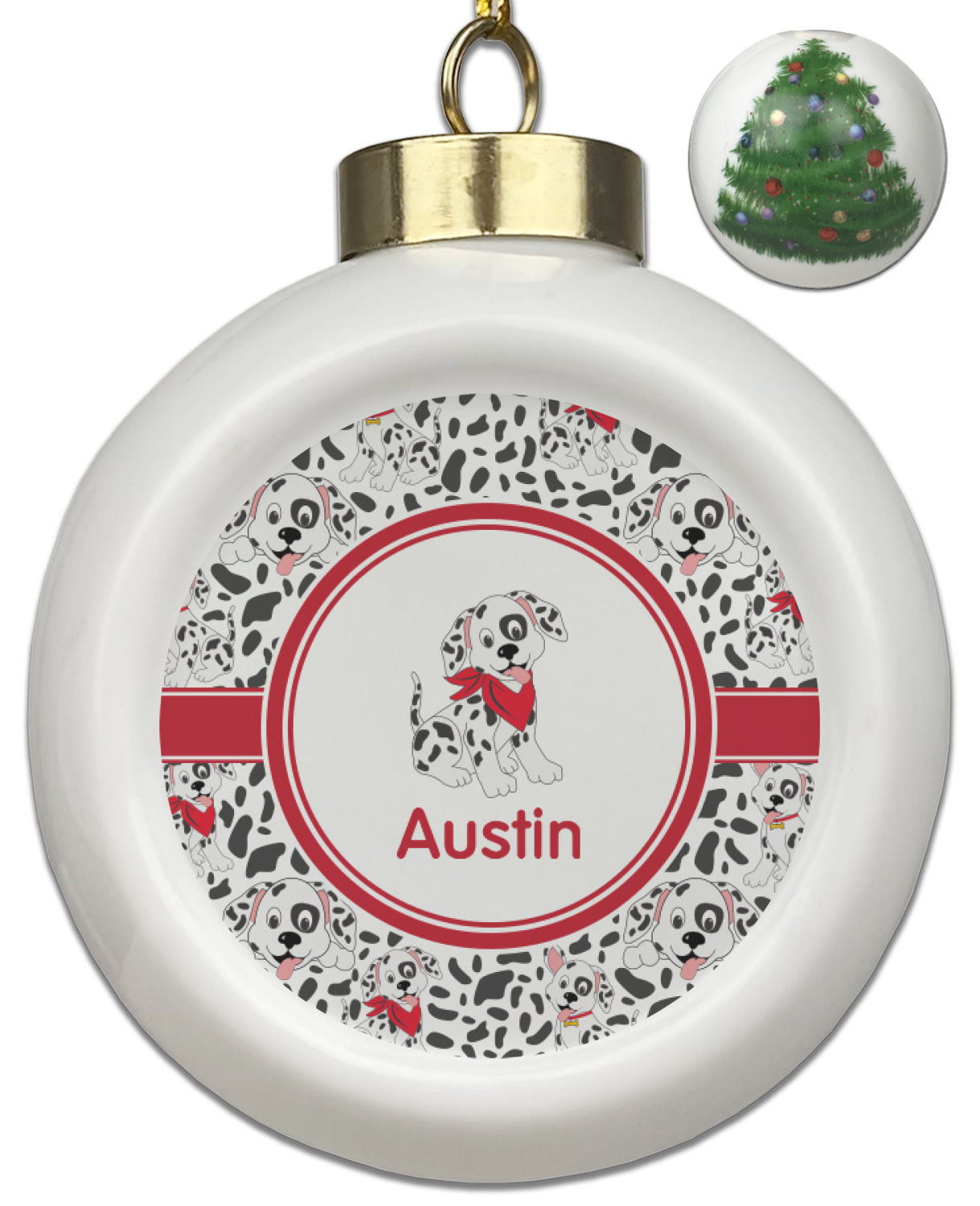 Our Christmas ornaments are a unique ceramic ball shape with a twist as it has a flat face to display your custom design! Select from one of our two design types - Christmas Tree or Poinsettia Garland - to adorn the curved back of your personal design. Each ornament measures 3H x 2.5W x 2D accompanied with a gold string accent for finishing touches to hang on your beautiful Christmas tree!