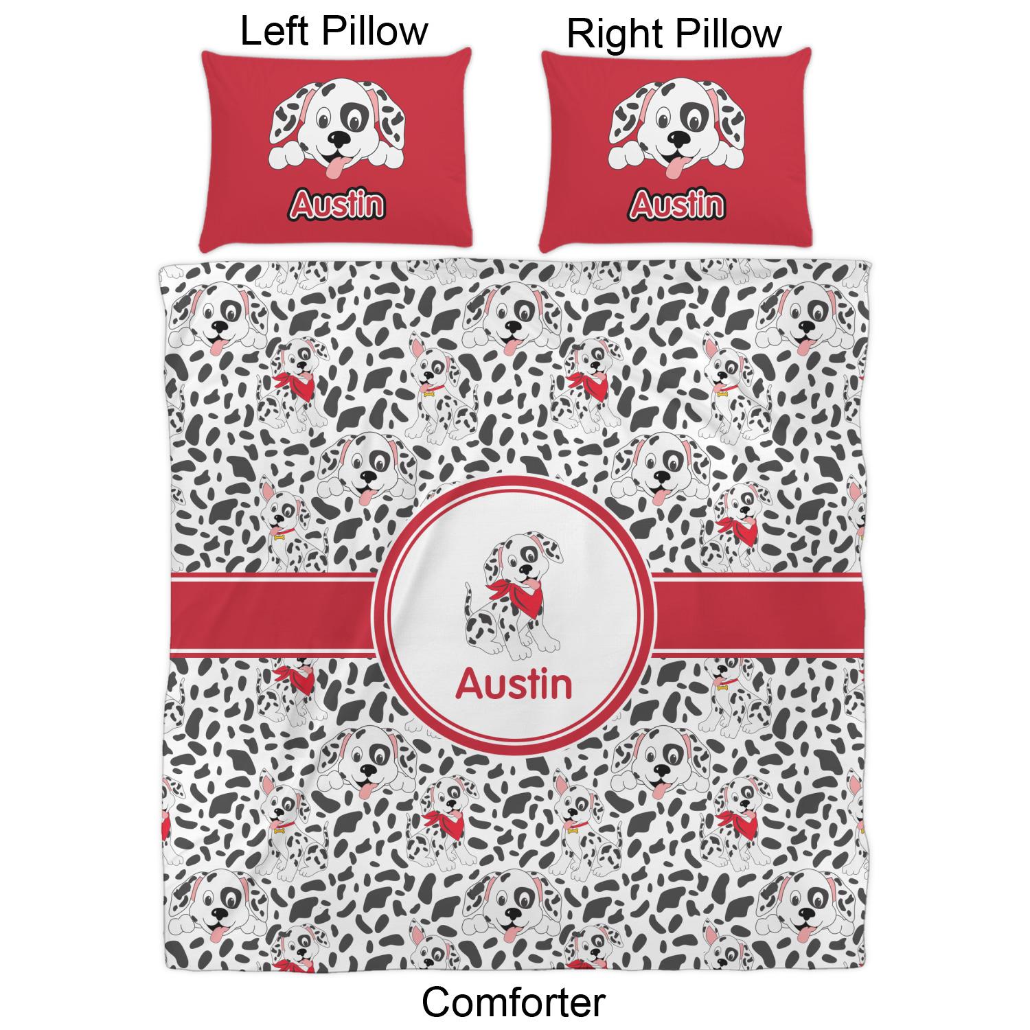 We have hundreds of different design templates for you to choose from Each design can be customized to your exact specifications. Not only can you customize the comforter, but you can also customize each pillow sham e.g. for a queen comforter set you have have Mr & Mrs pillow shams with the last name on comforter.