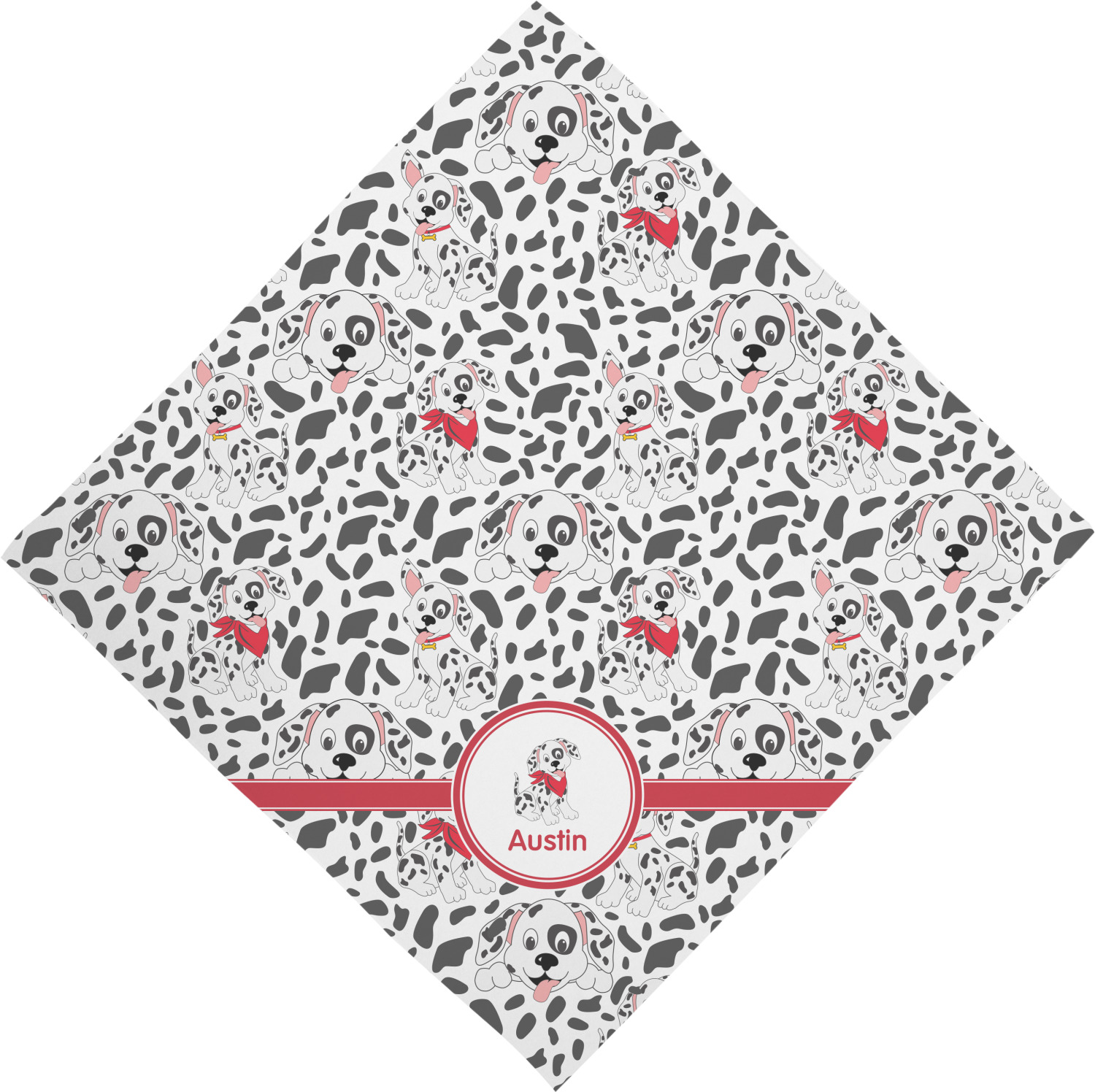 This beautiful pet bandana really is the perfect accessory. It is made from a silky feeling polyester and measures at approximately 23" x 23". Your personalization will be printed on a diagonal, so that you are able to read the personalization when folded into a triangle. This bandana fits best on large dogs, but can be folded smaller if there is no personalized text to fit smaller pets.