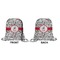 Our drawstring backpacks are available in 3 sizes. Small is approx 15in tall by 13in wide. Medium is approximately 18in tall by 17in wide. Large is 23in tall and 19in wide.