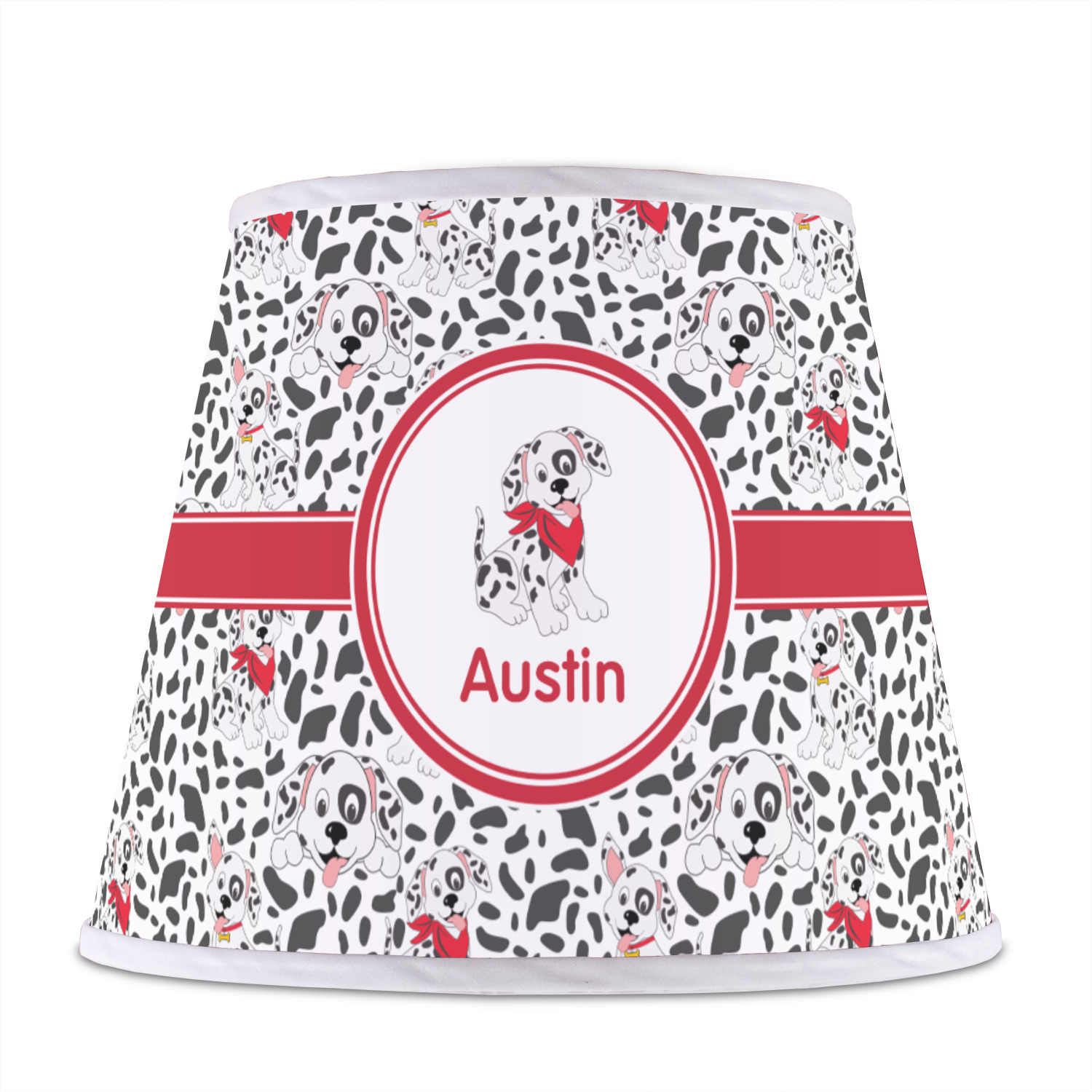 The base of this lampshade is 12 inches in diameter, and the top spans 8 inches in diameter. The total height of the lampshade is 10 inches. The angled nature of this custom lampshade concentrates the light, making it ideal for smaller spaces. This lampshade is made of matte, polyfilm, and displays your customization in its middle. The top and bottom of this colorful lamp shade are lined with a white fabric ribbon (which can be replaced with black inside the design studio) which frames your design and creates a sophisticated finish. As an UNO fitter lampshade, this unique lamp shade will fit a variety of bases.