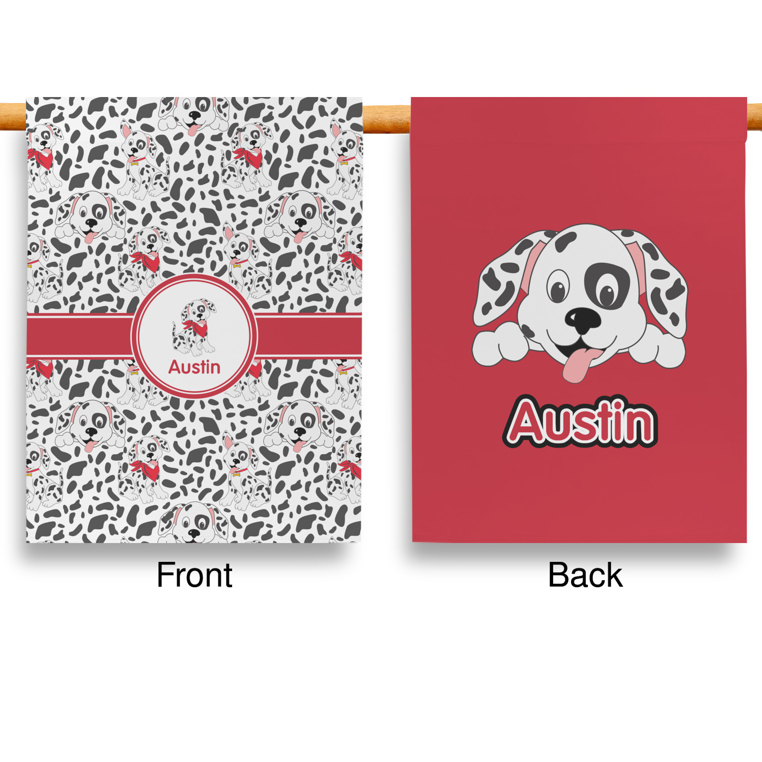 These custom garden flags are made of a durable, double-ply, polyester weave, allowing them to withstand the elements year round. The small flags measure at approximately 12 by 18 inches. The large flags measure out to 28 by 37 inches. You can order these decorative flags with your customization printed on the front only, or the front and back.