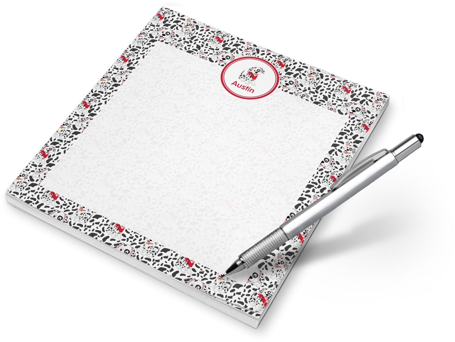 Your custom notepad features 50 sheets of thick, white paper, with your customization in the background and the edges. At approximately 6" x 5.5", these personalized memo pads are slightly larger than your average notepad. The individual notes tear easily from binding, which allows for quick, convenient, note-taking.