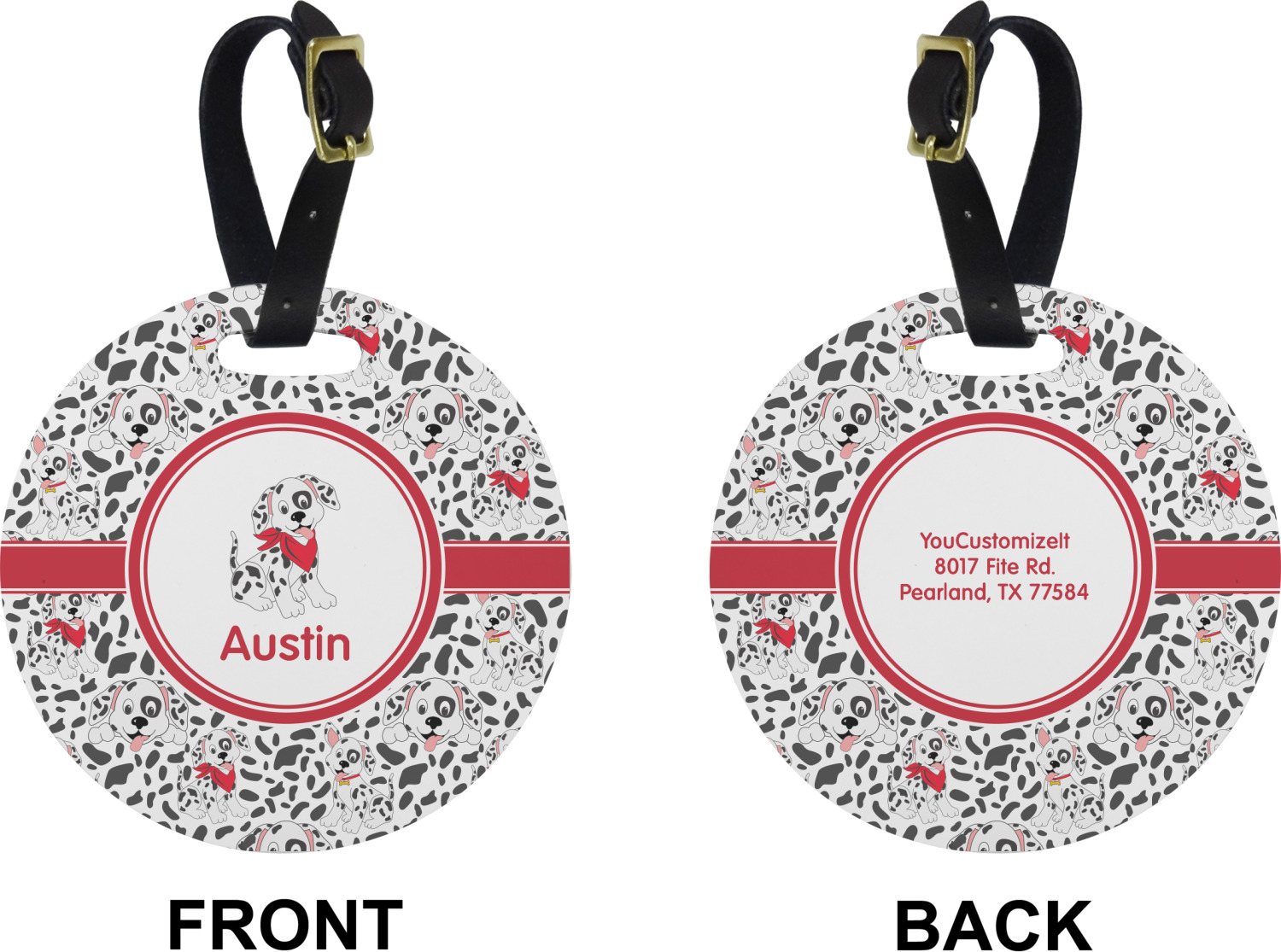 These cute luggage tags are made of a fiber-reinforced, UV-resistant plastic, making them waterproof and durable enough for both everyday use and the rugged adventures of any traveler! A leather strap with holes and a buckle is included with your purchase and can be used to attach your custom luggage tag to any suitcase, backpack, or duffel bag. You can design these travel tags as you wish; your customization will be displayed across the front, while the back will show as little or as much personal information as you want.