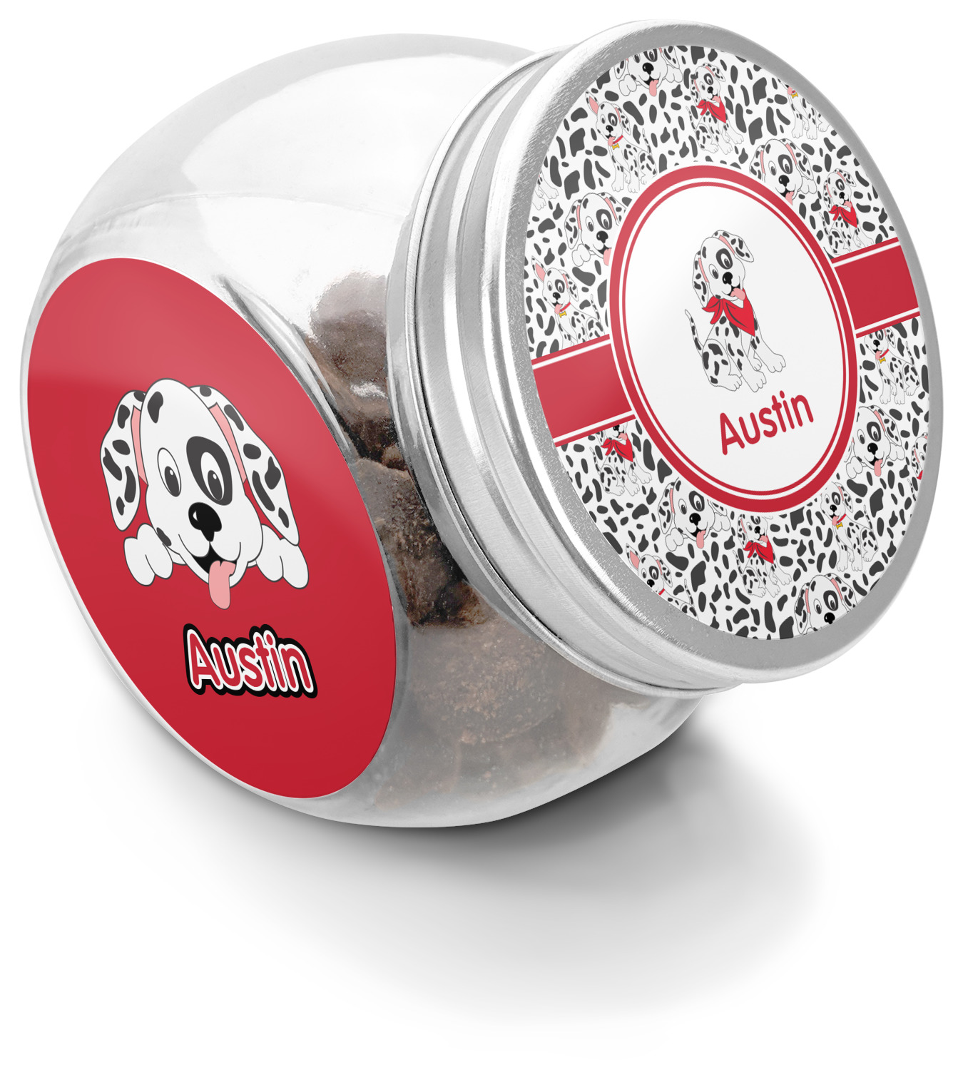 Pleased with your customized design? Perhaps purchase a matching dog food bowl, dog food mat, or even another, larger dog treat jar! Check out our Pet Accessories Department for even more gift options for your puppy.