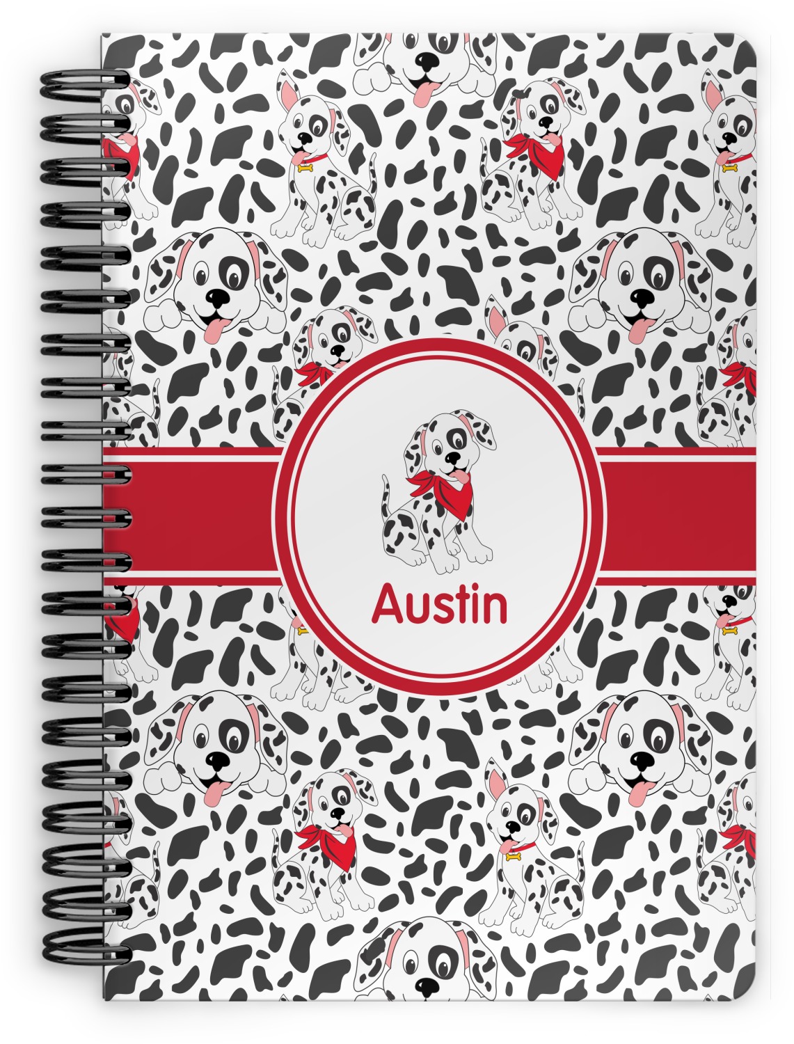 This spiral notebook includes 75 sheets of thick, ruled paper. The front and back of this custom notebook is made of a robust, laminate, plastic covering. We print your personalization on these two panels, underneath a glossy finish, which emphasizes the colors of your design. The two panels and the sheets of paper are held together by a sturdy, black coil. The paper within your bound notebook is perforated for easy, clean tearing.