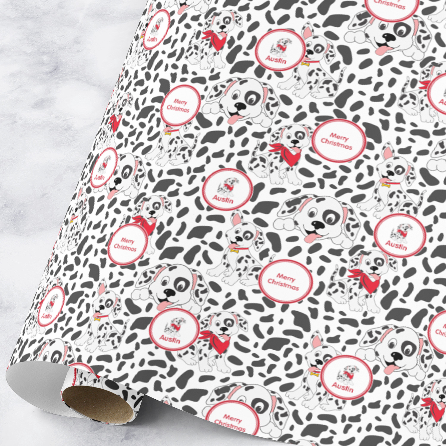 Our rolls are printed on premium paper in in a satin or matte finish. The wrapping paper is scratch & water resistant; it is flexible and will resist cracking when folded or creased. We use 100% water based inks for the wrapping paper rolls.