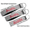 These key fob keychains are made from a polyester weave, right here in the USA. They feature a silver, metal clasp, attached to a round keyring. The piece gives the personalized wristlet a beautiful, finished look. Your customized design is printed on the outside of the keychain strap. We carry these wristlets in two sizes: small, which is 5 inches in width, and large, which is 5.5 inches in width.