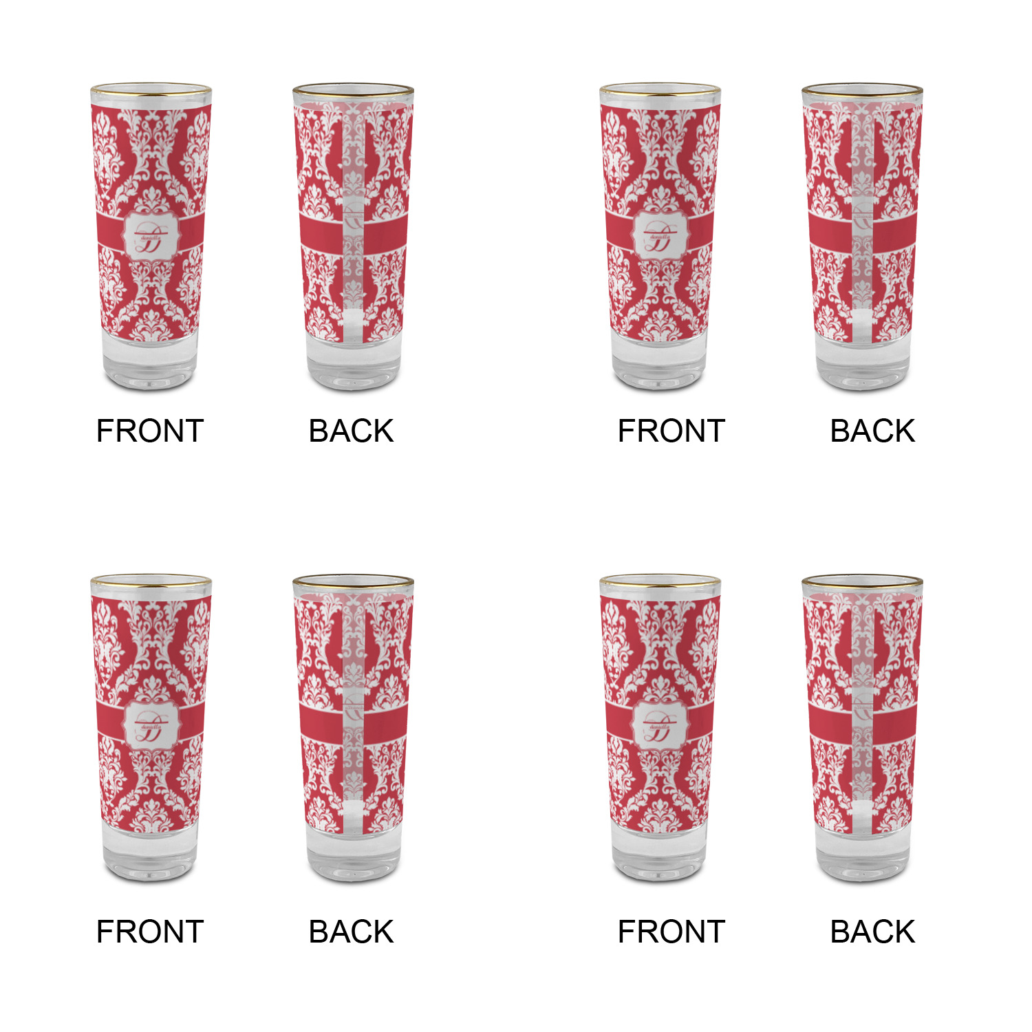 These glass shooter glasses are printed in full color with the design of your choice. These are a tall shooter 2 oz size and stand 4" tall. The print is a full wrap design to boldly display your personalization.