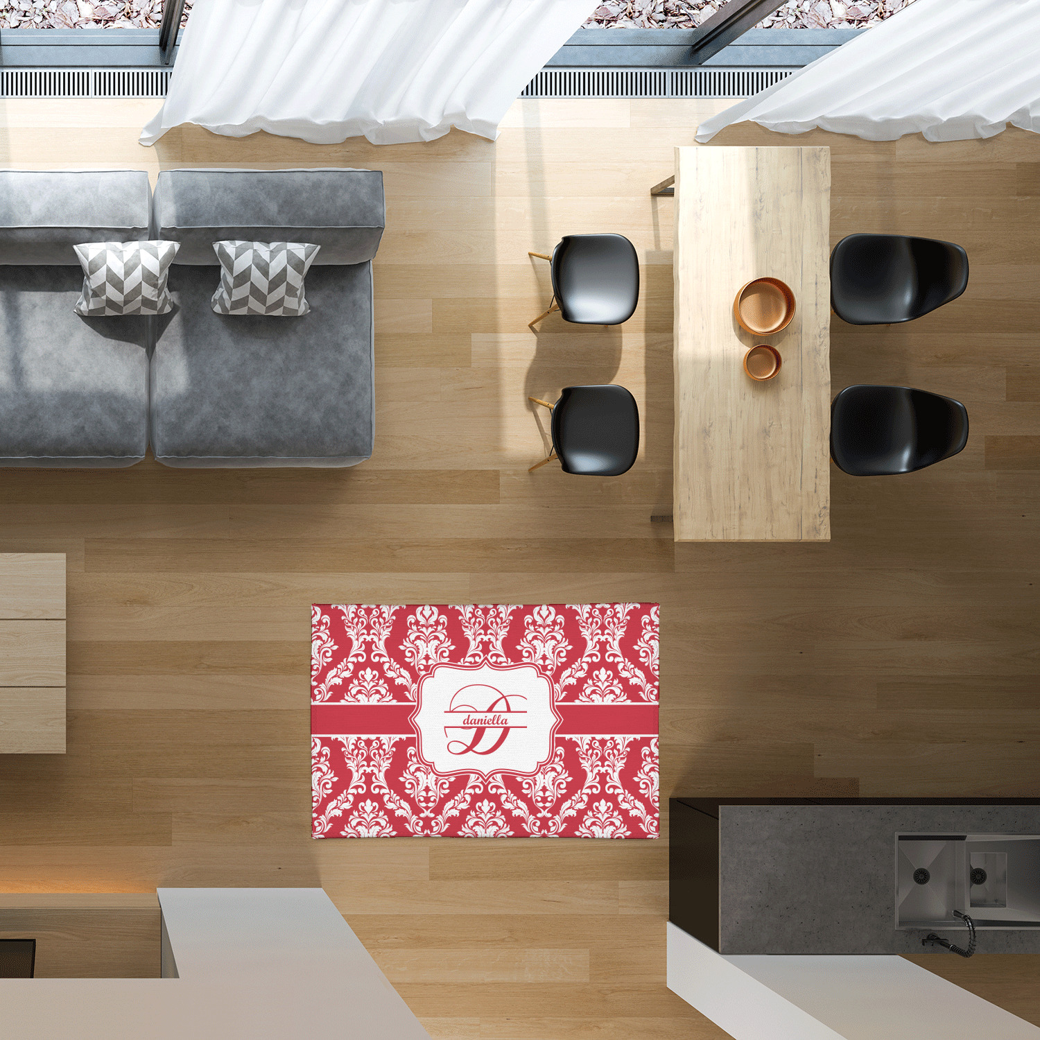Area rugs add color and warmth to any room in the house, so create a custom area rug to suit your personal style and match it to the colors in your home. Have it personalized with a monogram, initial, name or a combination of these - the choice is yours.