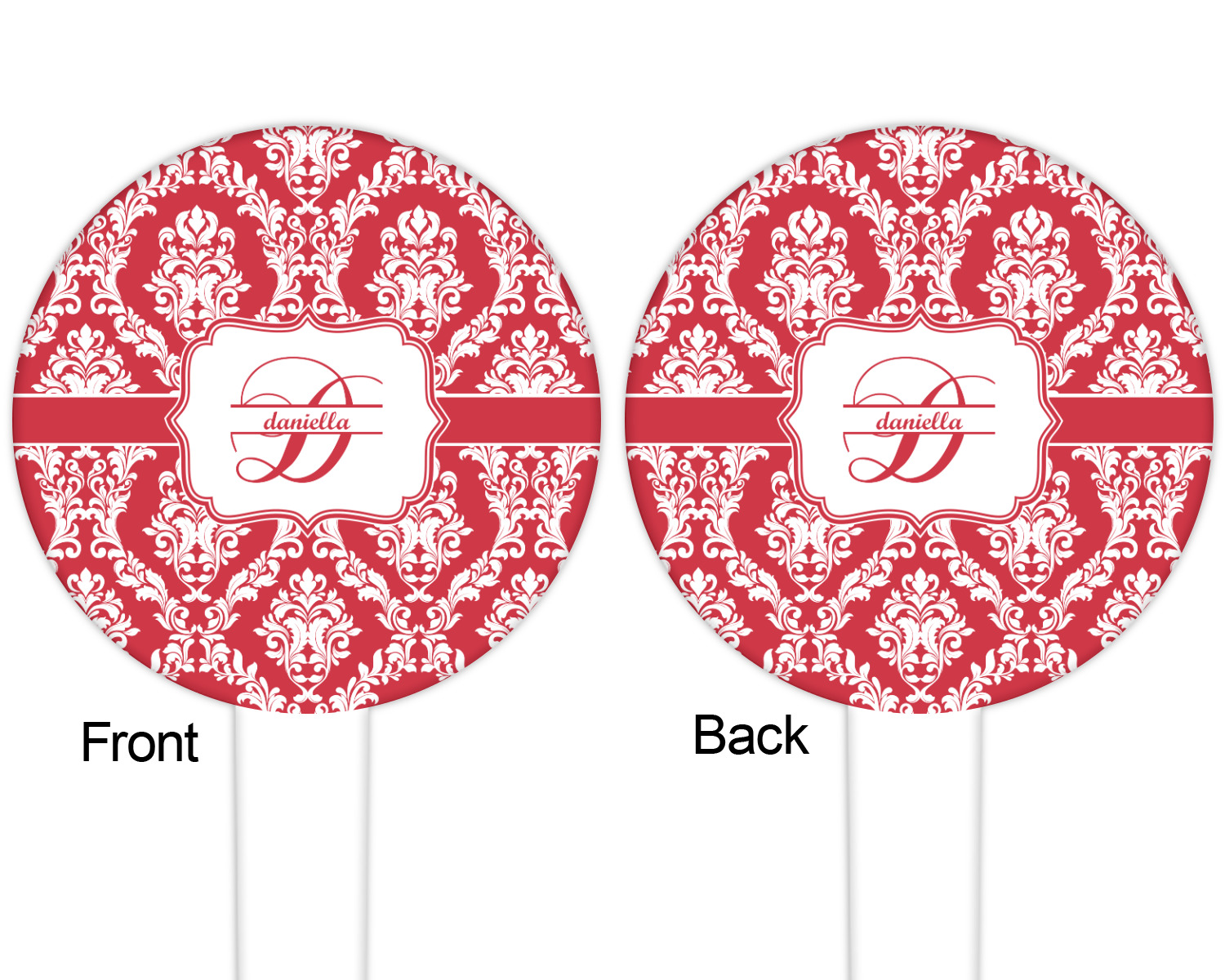 The round disc on these food & drink picks can be customized and personalized to your specifications. Your image will be printed in full color on one side or both sides. You can use the same image on both sides or use two different images.