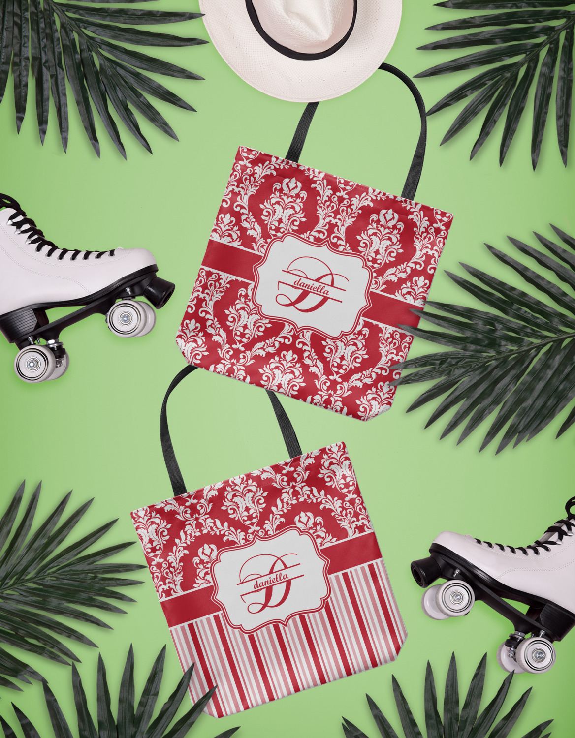 Our all purpose Canvas Totes bags are available in 3 sizes and in hundreds of different designs with many different prints & patterns, which are available in many different colors. You can customize the labels, the ribbons, the personalization styles and of course the fonts.