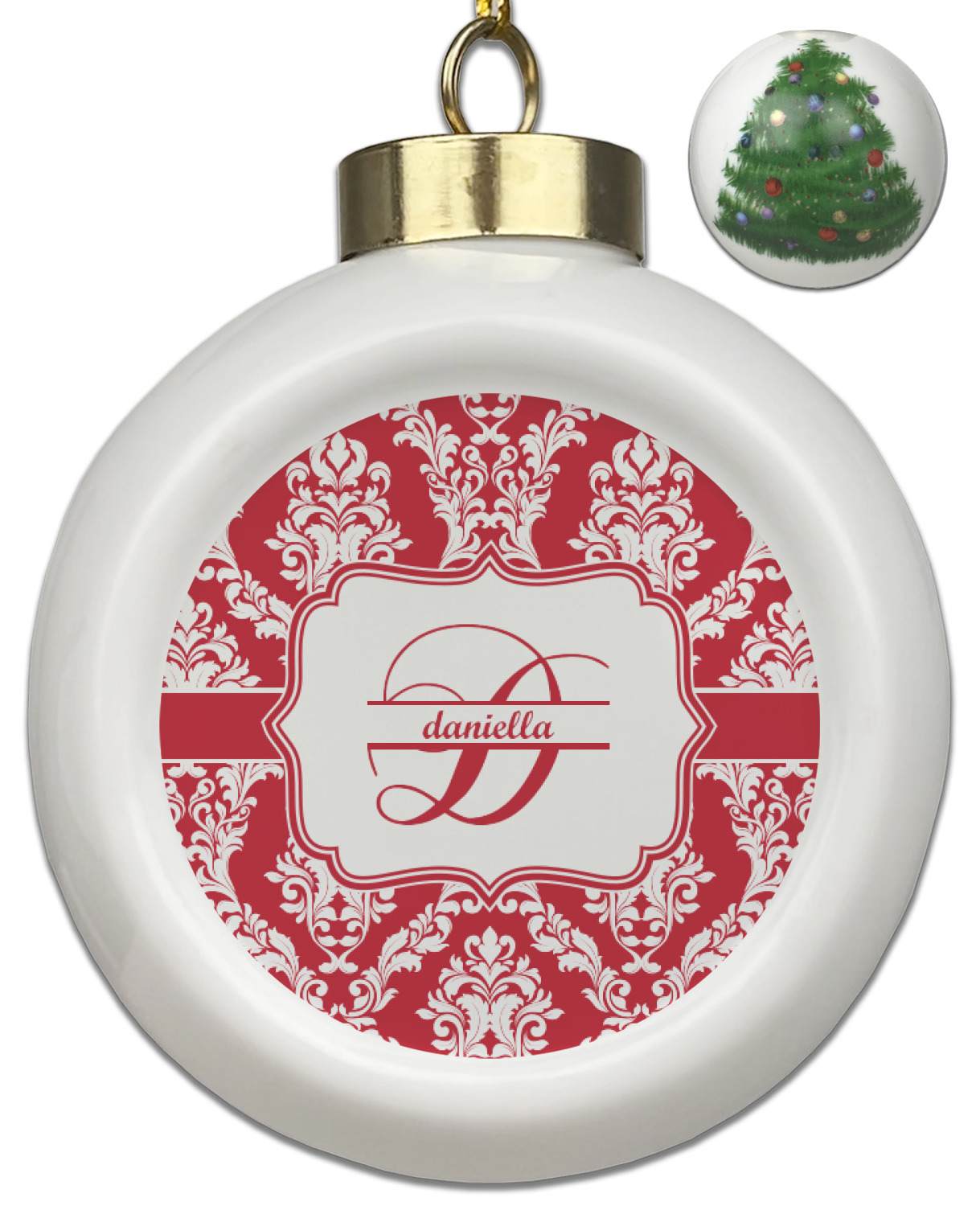 Our Christmas ornaments are a unique ceramic ball shape with a twist as it has a flat face to display your custom design! Select from one of our two design types - Christmas Tree or Poinsettia Garland - to adorn the curved back of your personal design. Each ornament measures 3H x 2.5W x 2D accompanied with a gold string accent for finishing touches to hang on your beautiful Christmas tree!