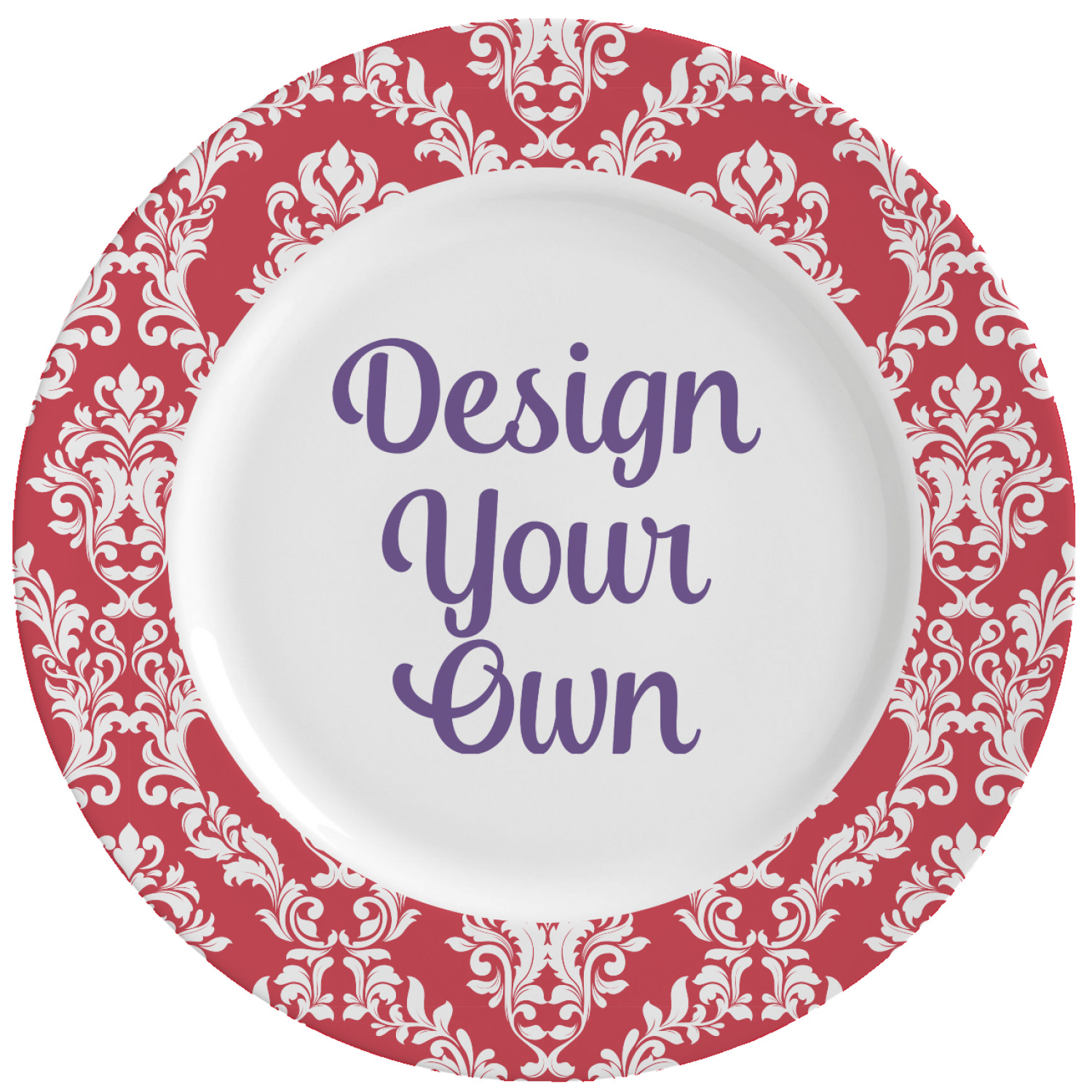 With this custom dinner plate, your have the option of personalizing the rim with an attractive pattern, and then displaying a name, graphic, or text in the center of the plate, against a white background. The exterior of this plate is also the same classic, white color. A glaze coats your plate, making your vividly colored design seem even more vibrant.