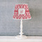 The base of this lampshade is 12 inches in diameter, and the top spans 8 inches in diameter. The total height of the lampshade is 10 inches. The angled nature of this custom lampshade concentrates the light, making it ideal for smaller spaces. This lampshade is made of matte, polyfilm, and displays your customization in its middle. The top and bottom of this colorful lamp shade are lined with a white fabric ribbon (which can be replaced with black inside the design studio) which frames your design and creates a sophisticated finish. As an UNO fitter lampshade, this unique lamp shade will fit a variety of bases.