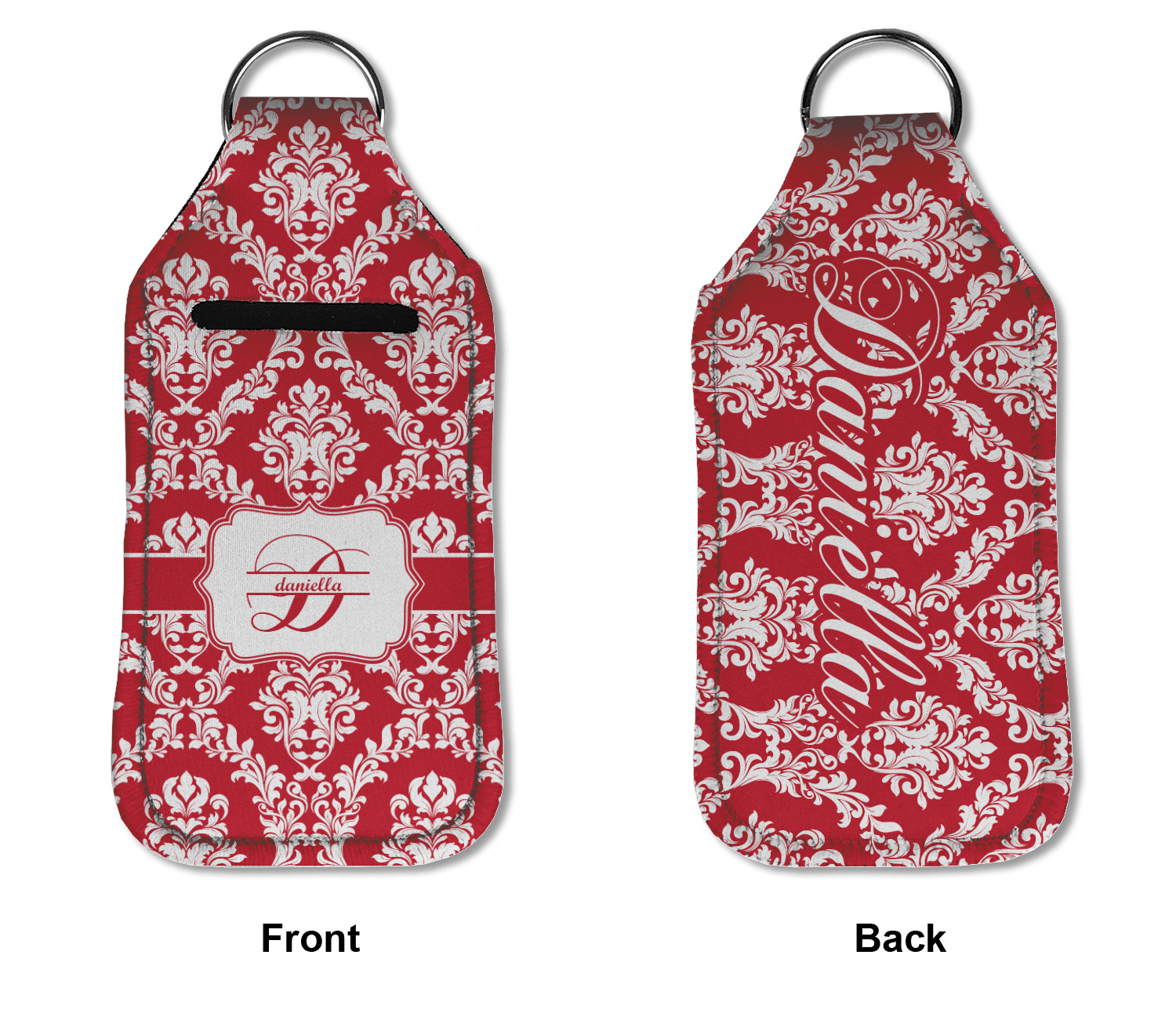 Each hand sanitizer holder comes with its own empty travel-sized, refillable hand sanitizer sure to fit snug in your customized sanitizer case! Our hand sanitizer cases are a durable, yet soft neoprene material sure to last any daily activities or travel agenda. Customize and personalize a hand sanitizer bottle holder with one of our two sizes - small (4.25" x 2.25") or large (5.5" x 2.5"). Each travel sanitizer holder comes with a keyring for attachment on bags, keys, or more!