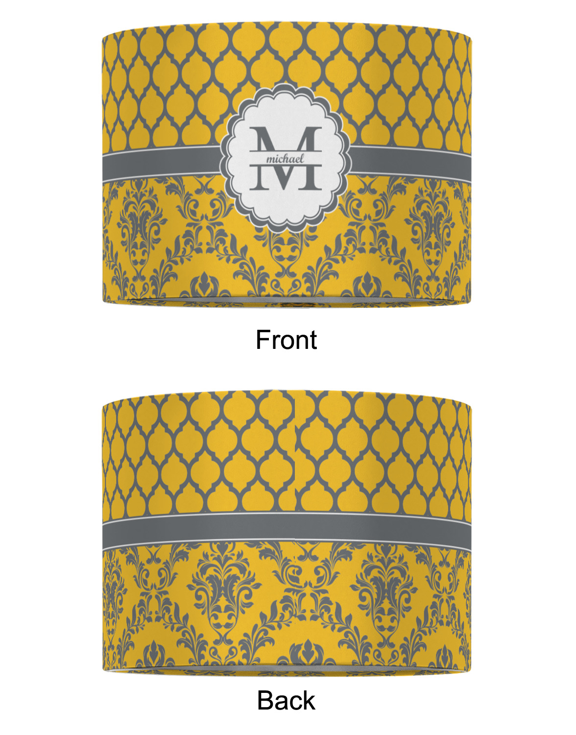 These pendant lampshades are in a cylindrical, drum shape. Available in 2 sizes - 16 inch diameter and a height of 10 inches or 12 inch diameter with a height of 8 inches, this lantern pendant light will not go unnoticed in your home. The interior of this light shade is made of flexible, smooth plastic, and the base color of the lamp is white. Your personalization is displayed on the exterior of this custom lampshade. The fabric shades the fabric fully wraps the ring for a sleek look. Your purchase includes a 12 foot long cord that has a convenient on and off switch attached, the cord is black in color with a tasteful cloth covering over the cord to add the sophisticated look to this light fixture. This lamp can fit a 60 or 75 watt light bulb, but the bulb is not included. Please scroll through the images above to learn more about the structure and shaping of this lamp compared to the other ones we offer.