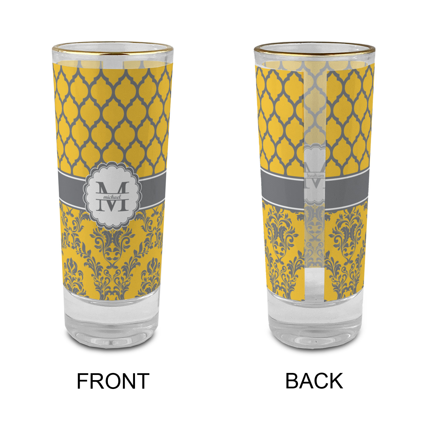 These glass shooter glasses are printed in full color with the design of your choice. These are a tall shooter 2 oz size and stand 4" tall. The print is a full wrap design to boldly display your personalization.