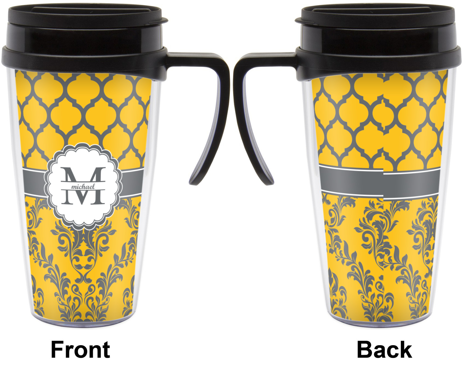 Keep your drink secure while on your daily commute with one of our personalized travel mugs! These travel mugs will add a splash of color and creativity to your kitchen counter-top, car cup holder, office desk, or wherever you choose to place them! With these custom mugs, you'll never have to settle for a boring, run-of-the-mill travel mug.