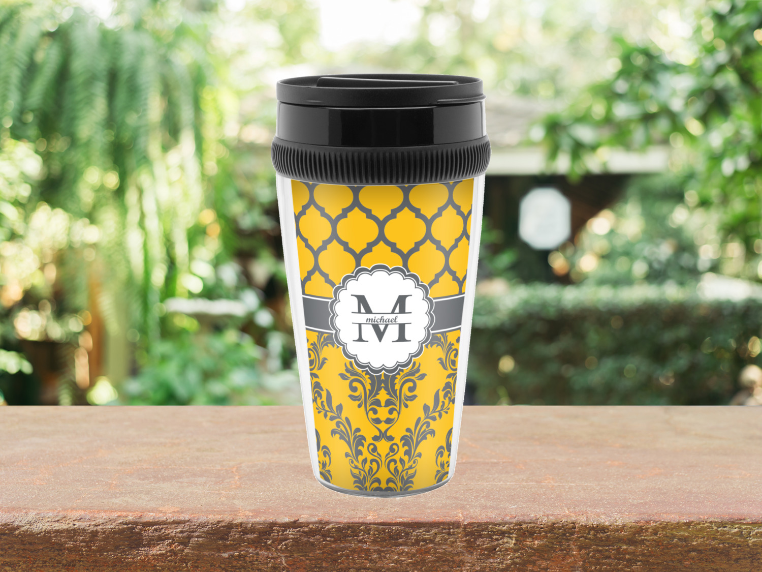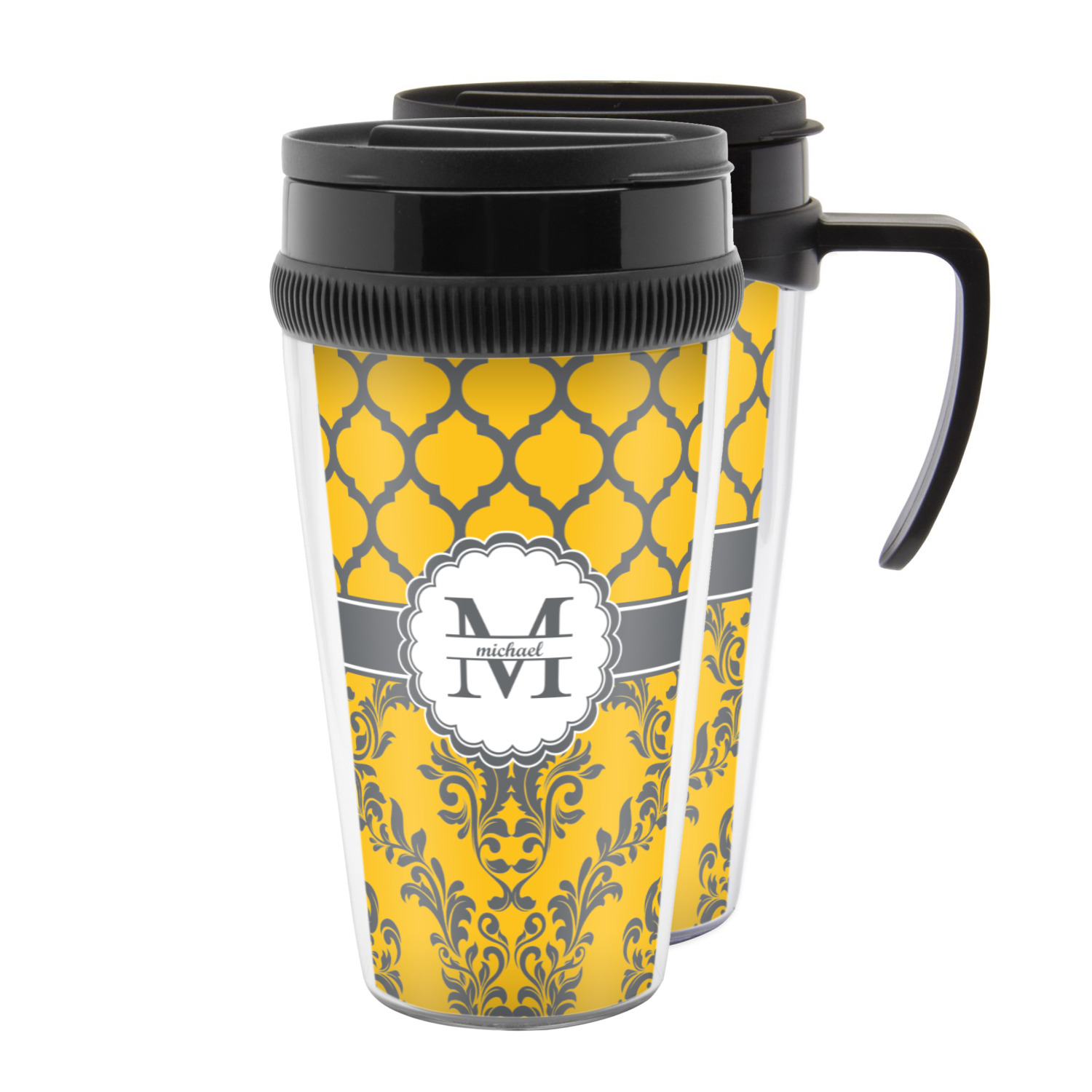 Keep your drink secure while on your daily commute with one of our personalized travel mugs! These travel mugs will add a splash of color and creativity to your kitchen counter-top, car cup holder, office desk, or wherever you choose to place them! With these custom mugs, you'll never have to settle for a boring, run-of-the-mill travel mug.