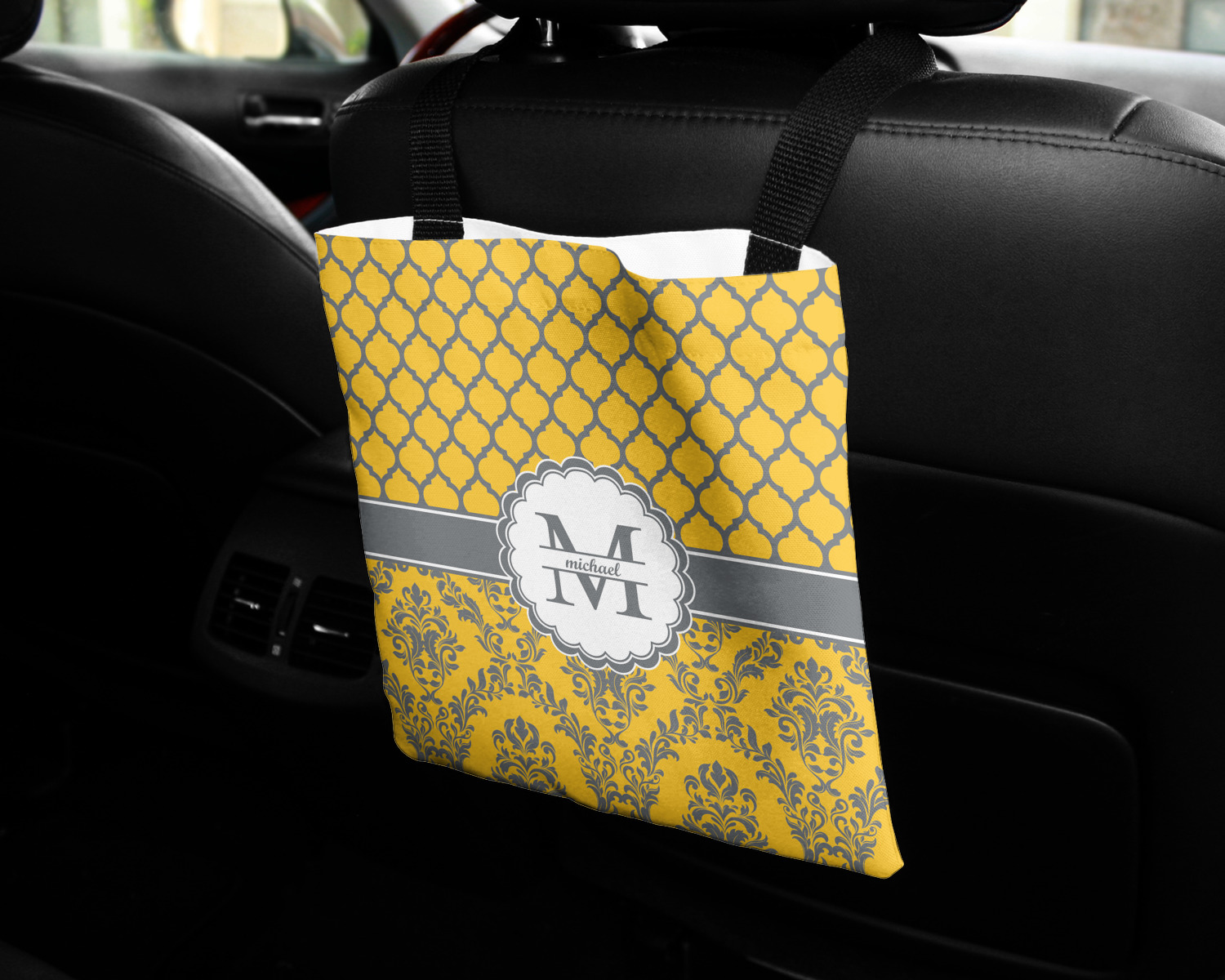 These car back seat organizers are sturdy tote-like bags, fabricated from a robust polyester, and features a single handle on the back side. The strap features an attachable velcro for easy attachment to headrests, grocery carts, car seats, and more. Simply undo the velcro, loop the strap around the headrest, reattach the velcro, and let the organizer hang from the front seat. These car organizers are the perfect means of increasing your backseat's legroom, while storing multiple items in one place for better accessibility. Each car back seat organizer measures at 10 by 10 inches, and features your personalized design printed across its front and back.