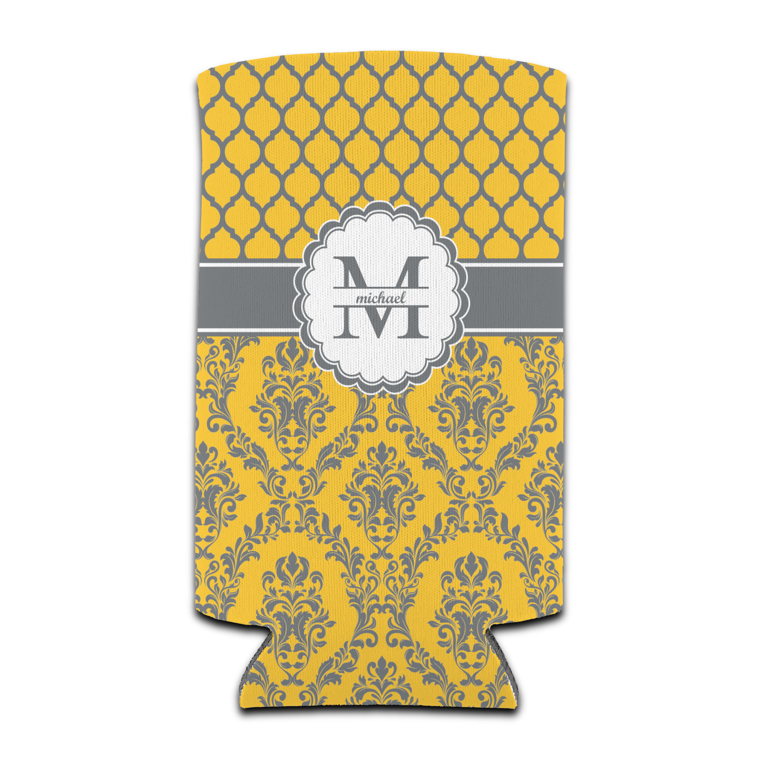 A gorgeous white scallop label trimmed in grey adorns the middle of the design to showcase the personalization of your choosing.