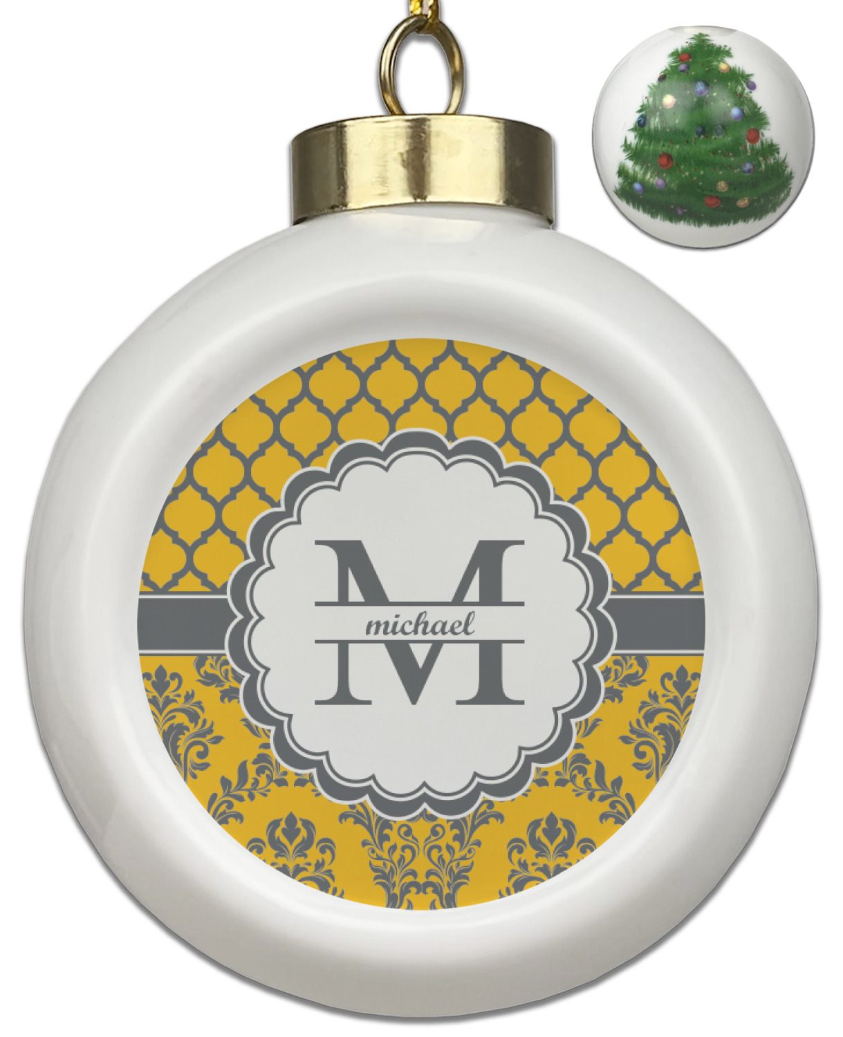 Our Christmas ornaments are a unique ceramic ball shape with a twist as it has a flat face to display your custom design! Select from one of our two design types - Christmas Tree or Poinsettia Garland - to adorn the curved back of your personal design. Each ornament measures 3H x 2.5W x 2D accompanied with a gold string accent for finishing touches to hang on your beautiful Christmas tree!
