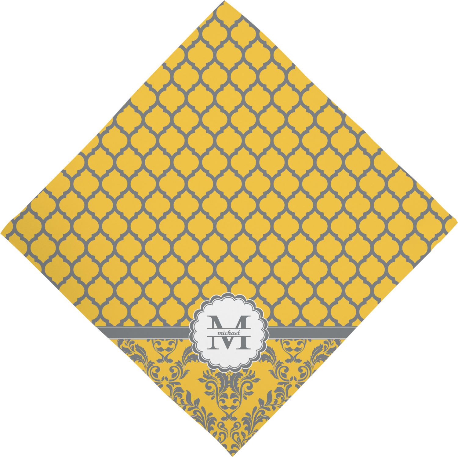 This beautiful pet bandana really is the perfect accessory. It is made from a silky feeling polyester and measures at approximately 23" x 23". Your personalization will be printed on a diagonal, so that you are able to read the personalization when folded into a triangle. This bandana fits best on large dogs, but can be folded smaller if there is no personalized text to fit smaller pets.